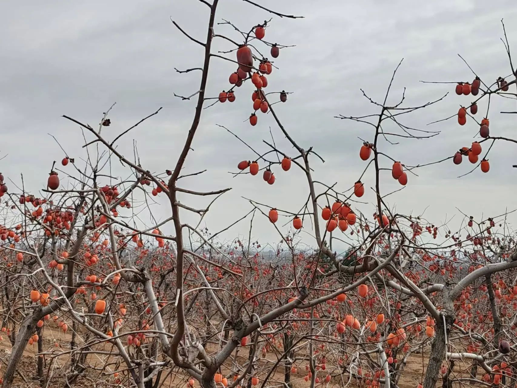 在探寻之旅中,我们偶然搜索附近,竟发现了唐顺宗丰陵。怀着好奇前往,抵达丰陵时,惊喜地看到那棵传奇的千年柿子树就在眼前。怀着敬畏之心,我们虔诚地拜谒了树王,只见它果实累累,满是岁月沉淀的馈赠。周围农民地里的柿子也挂满枝头,只是已变软,据说只能用来酿醋了。
