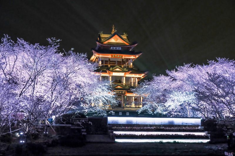 7-8月的鼋头渚,是太湖为夏日定制的清凉盲盒。乘仿古画舫冲进荷荡,荷叶田田织成天然遮阳伞,船娘摇橹声里,藕花深处的栈道藏着“接天莲叶无穷碧”的惊喜。傍晚登鹿顶山,看夕阳把太湖染成橘子汽水,夜樱谷19:00的水幕灯光秀如梦炸裂,湖风裹着荷花香扑面而来,40℃高温瞬间被“冰封”。