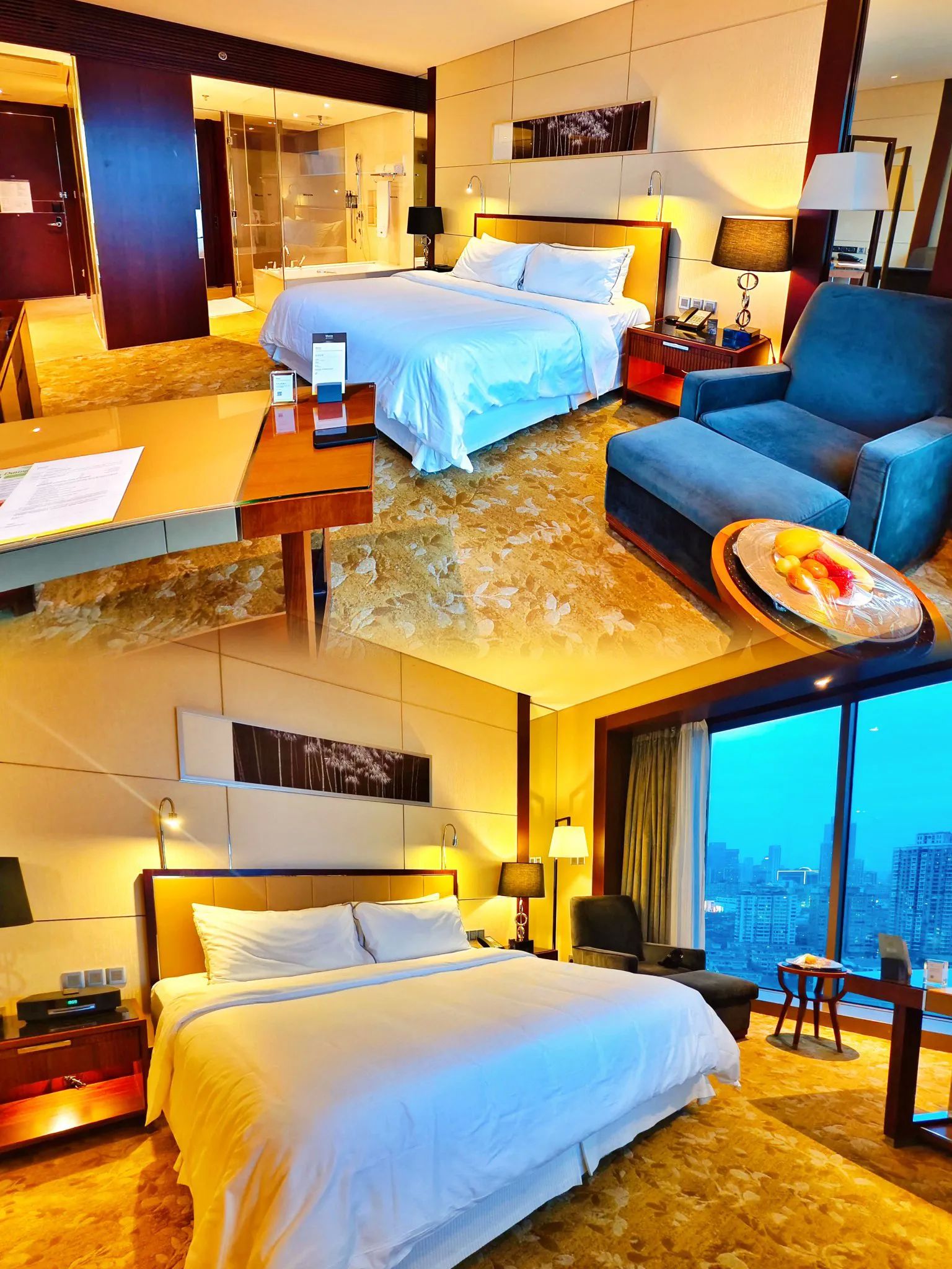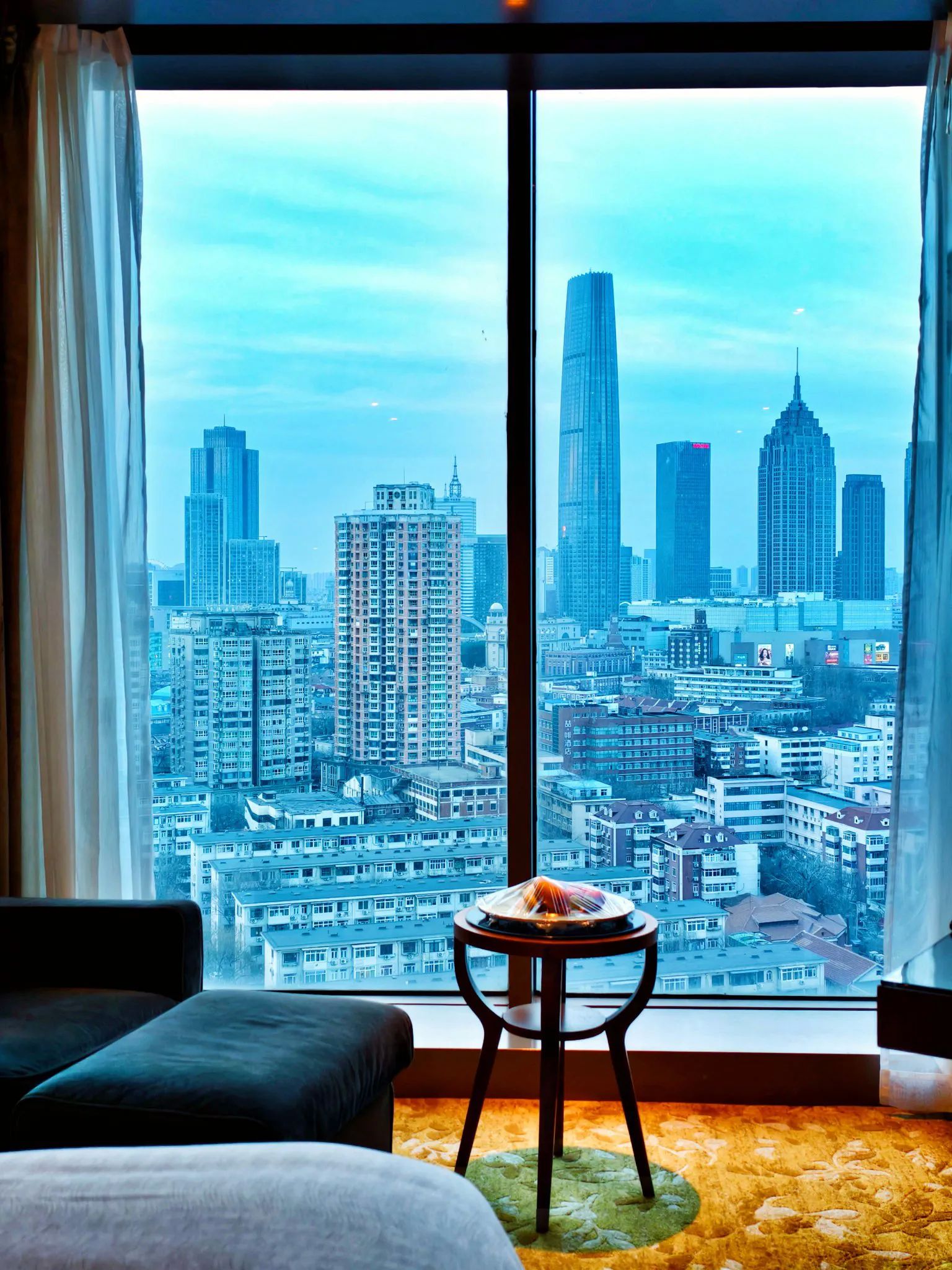 32分钟高铁,串联起北京南站与天津站的城际假期。再驱车10分钟,抵达天津君隆威斯汀酒店。这座好似玻璃灯塔的五星级酒店,矗立于南京路与五大道的交汇处,毗邻滨江道商圈,以270度全景落地窗将城市天际线框成巨幅画作——远处现代高楼与脚下红顶洋楼的对望,恰是天津“中西合璧”的缩影。