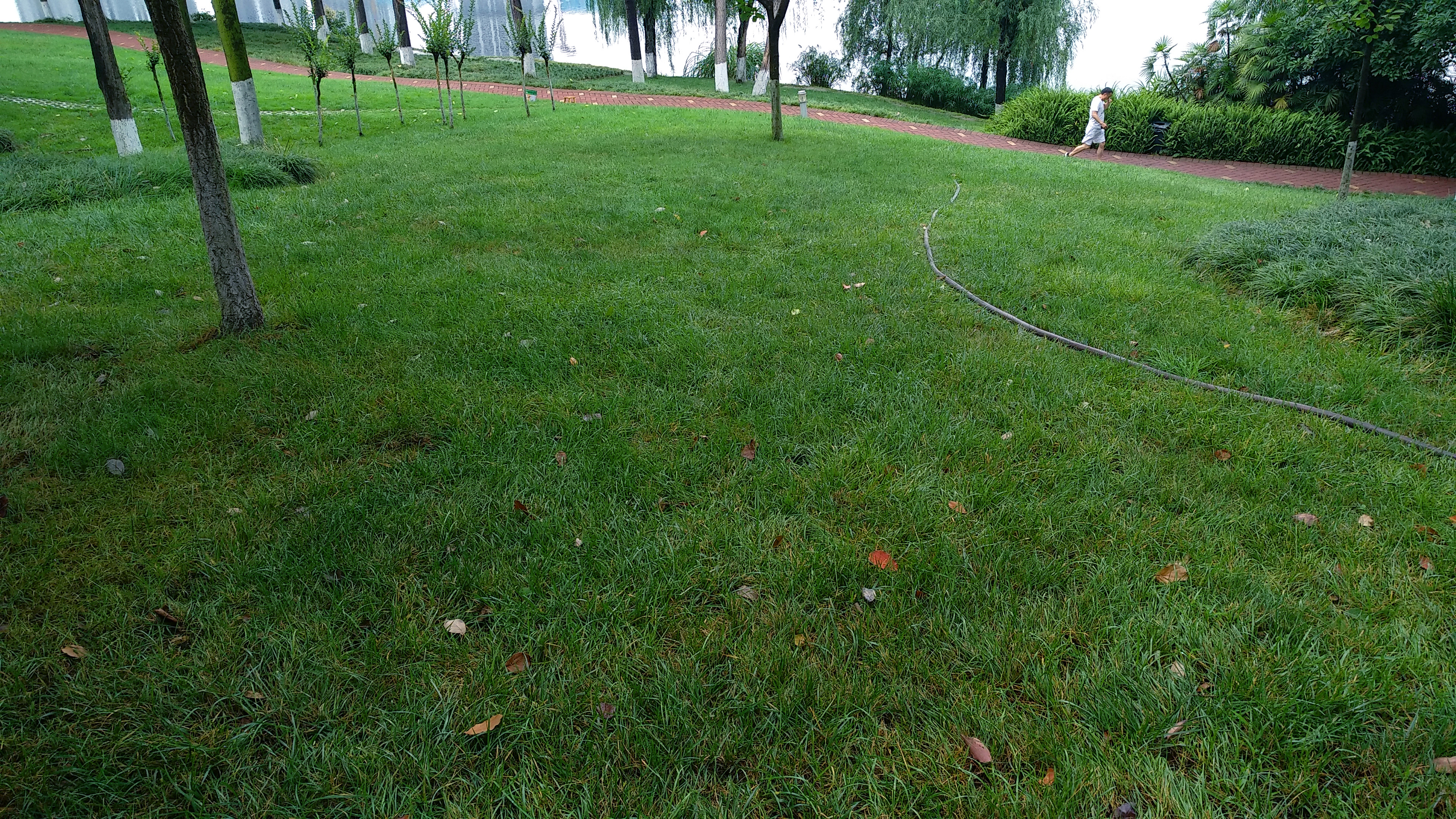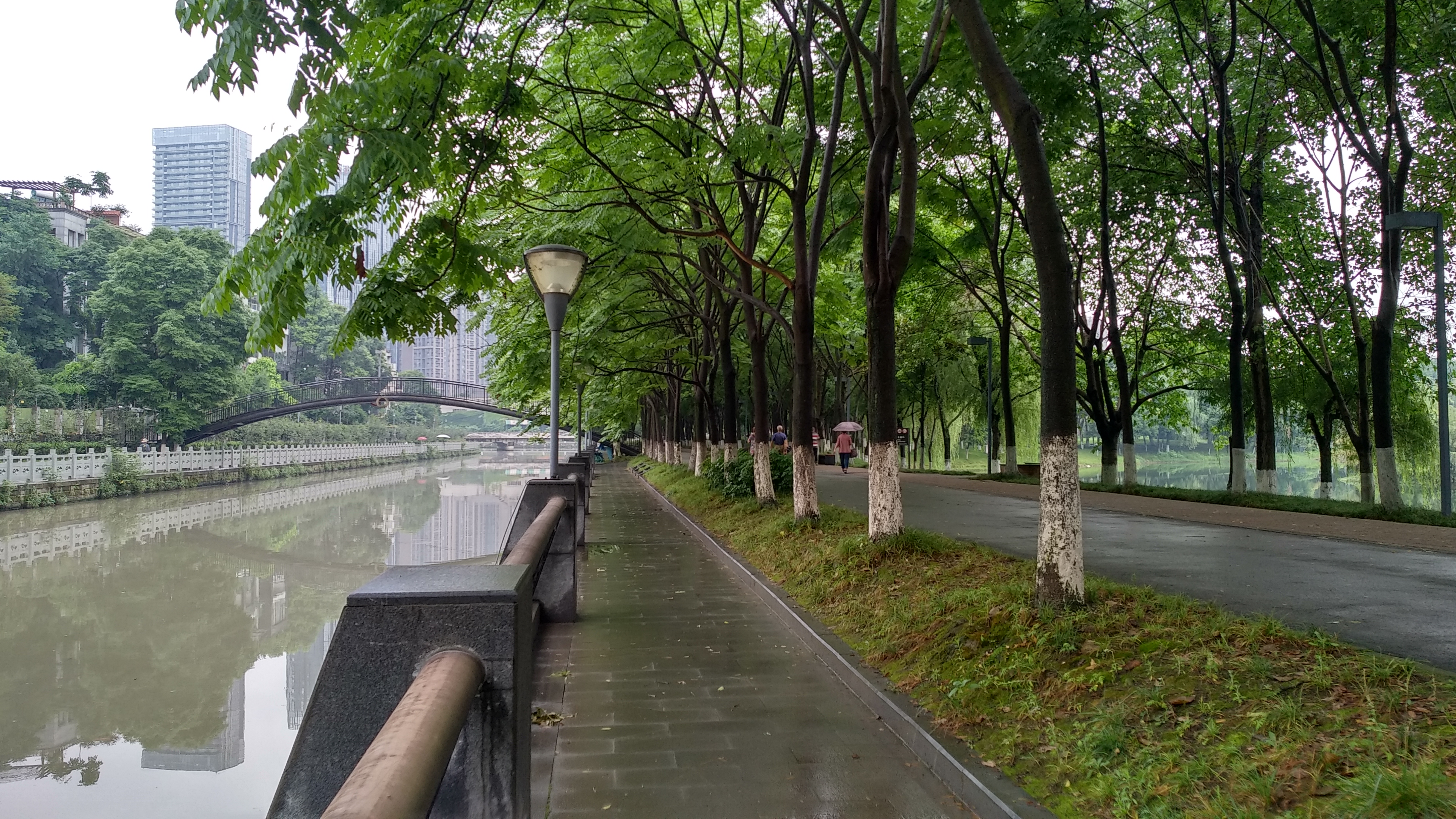 在湖的另一侧有条河,河岸的林荫道修缮的宽阔笔直在道旁高大的树木的衬托下显得娴静洒脱。