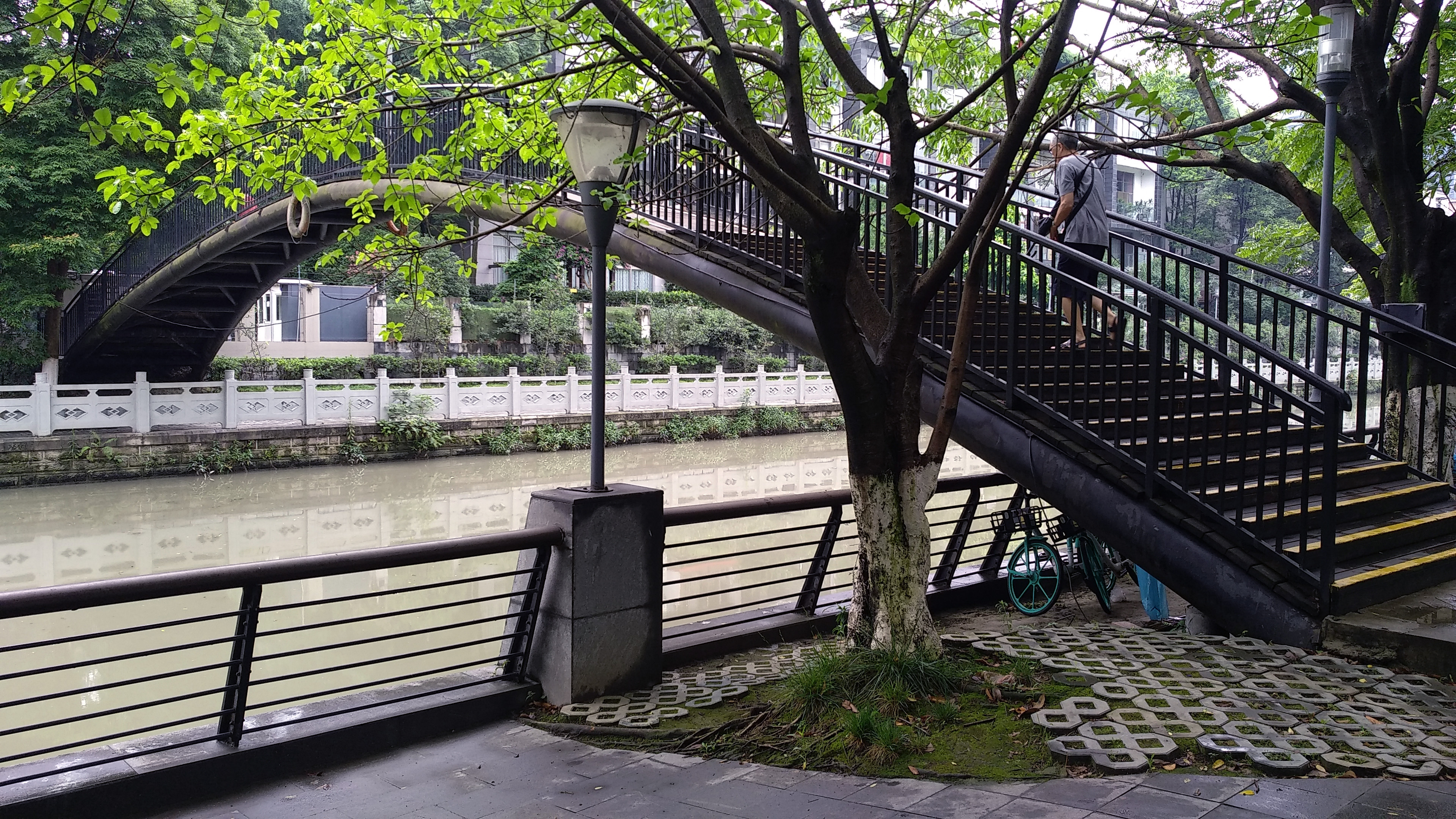 河上有座拱形铁桥设计的复古典雅非常有看头。