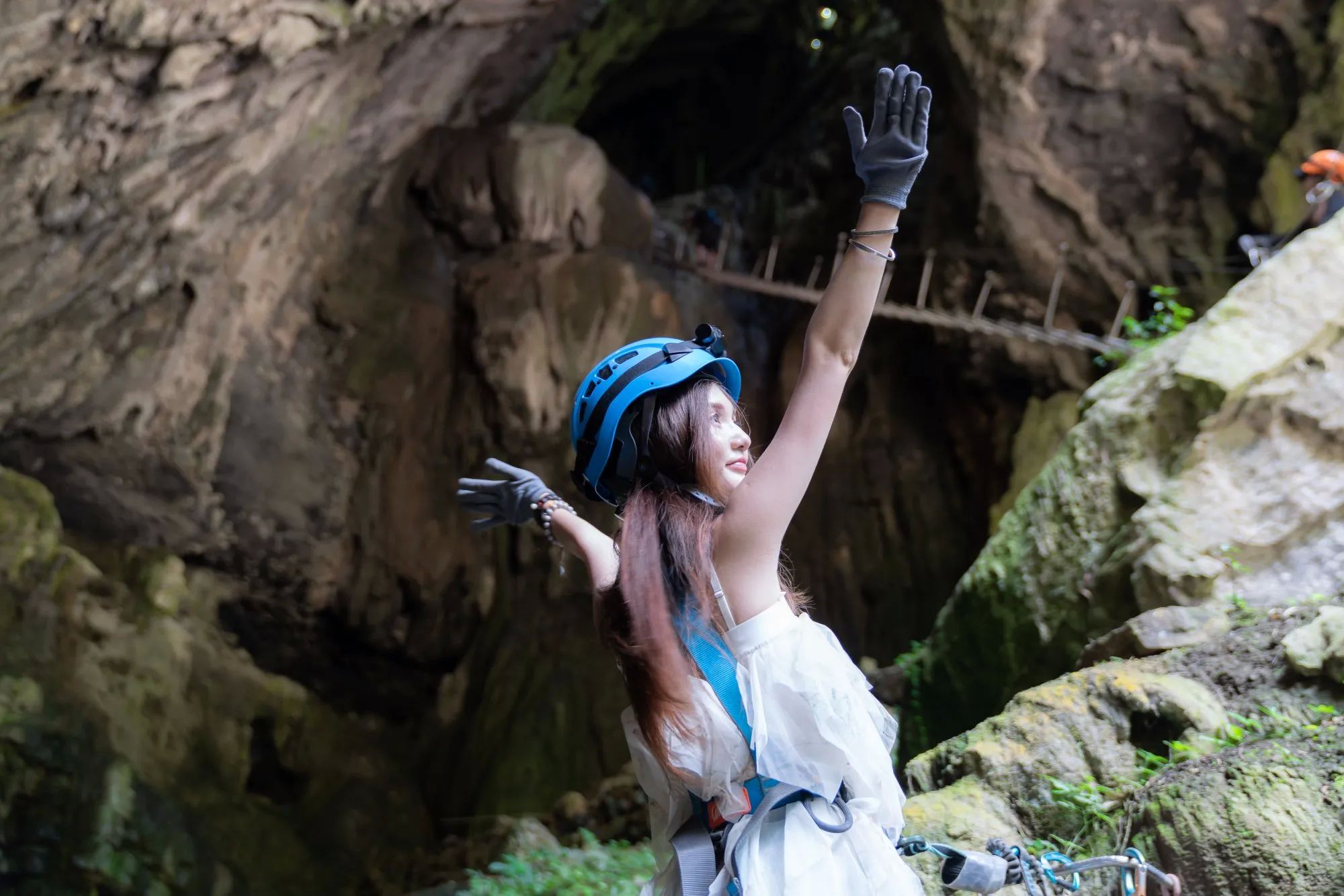 穿专业装备+头灯进钟乳石洞探险!