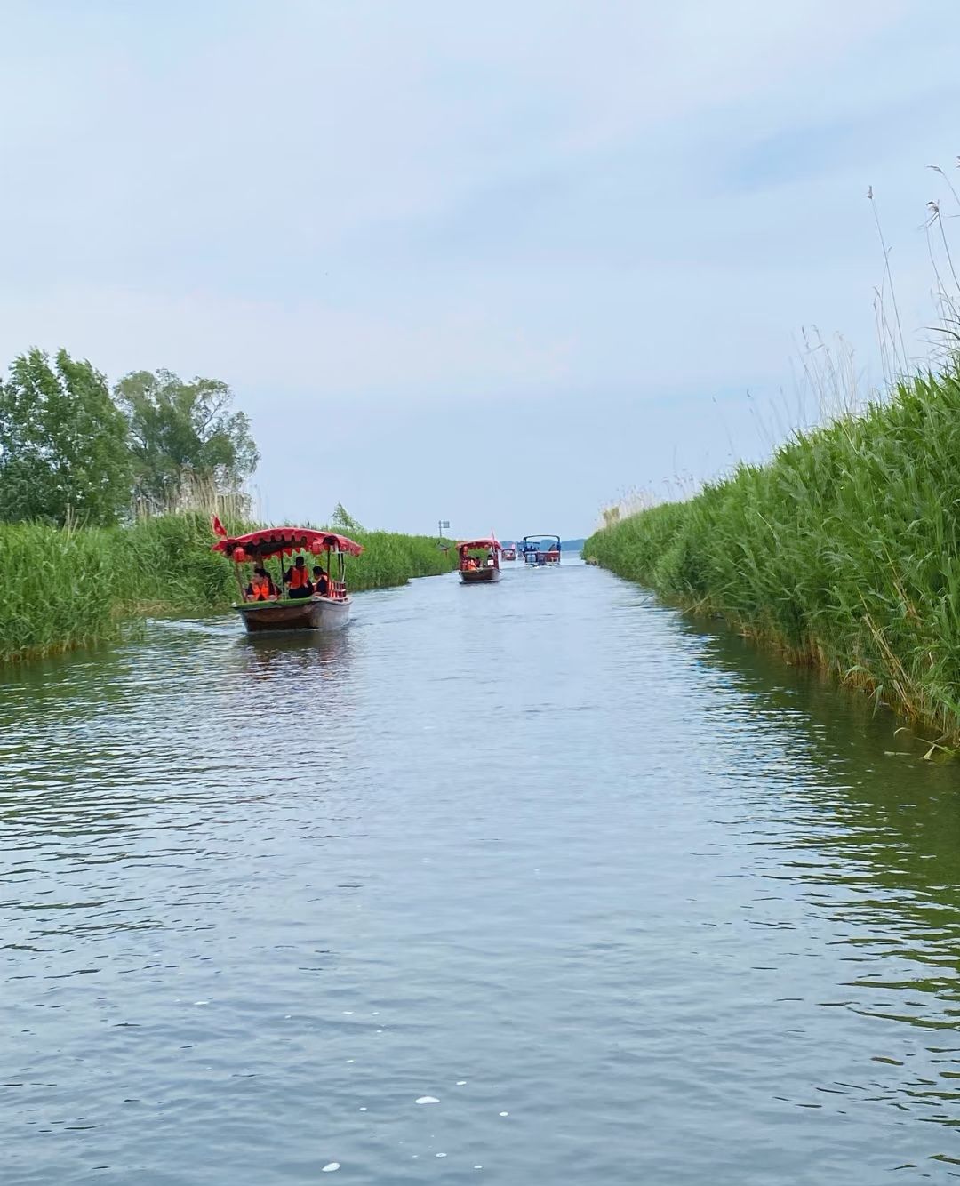 乘小船钻进万亩芦苇荡,水道弯弯像迷宫。