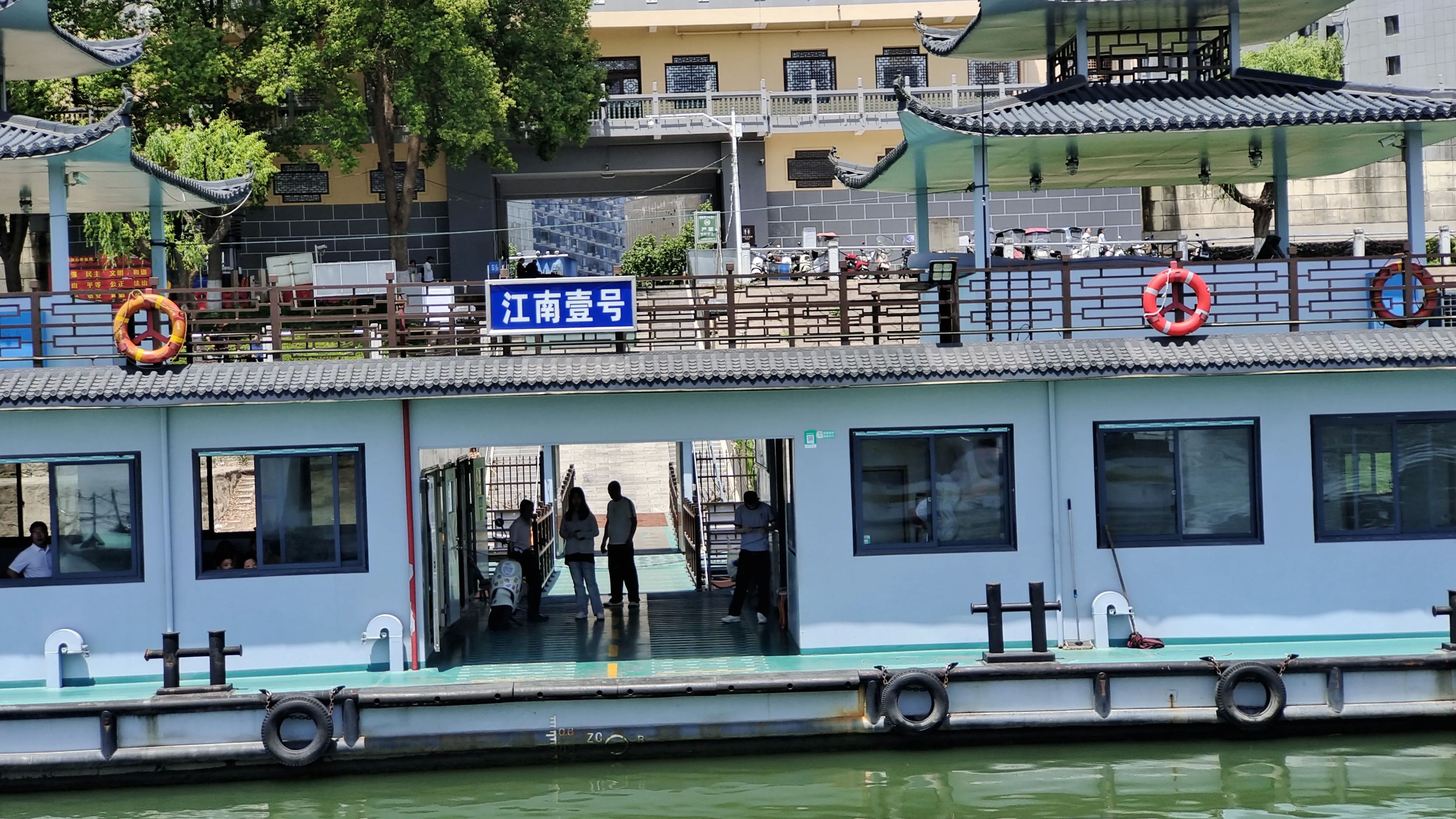 哈哈,我们没下船,坐了一个来回。坐在船上,吹着风、看着江水、好不惬意!有很多像我们一样坐船只是来玩的,我和儿子说那我们再坐一个来回,儿子说算了吧![捂脸][捂脸]