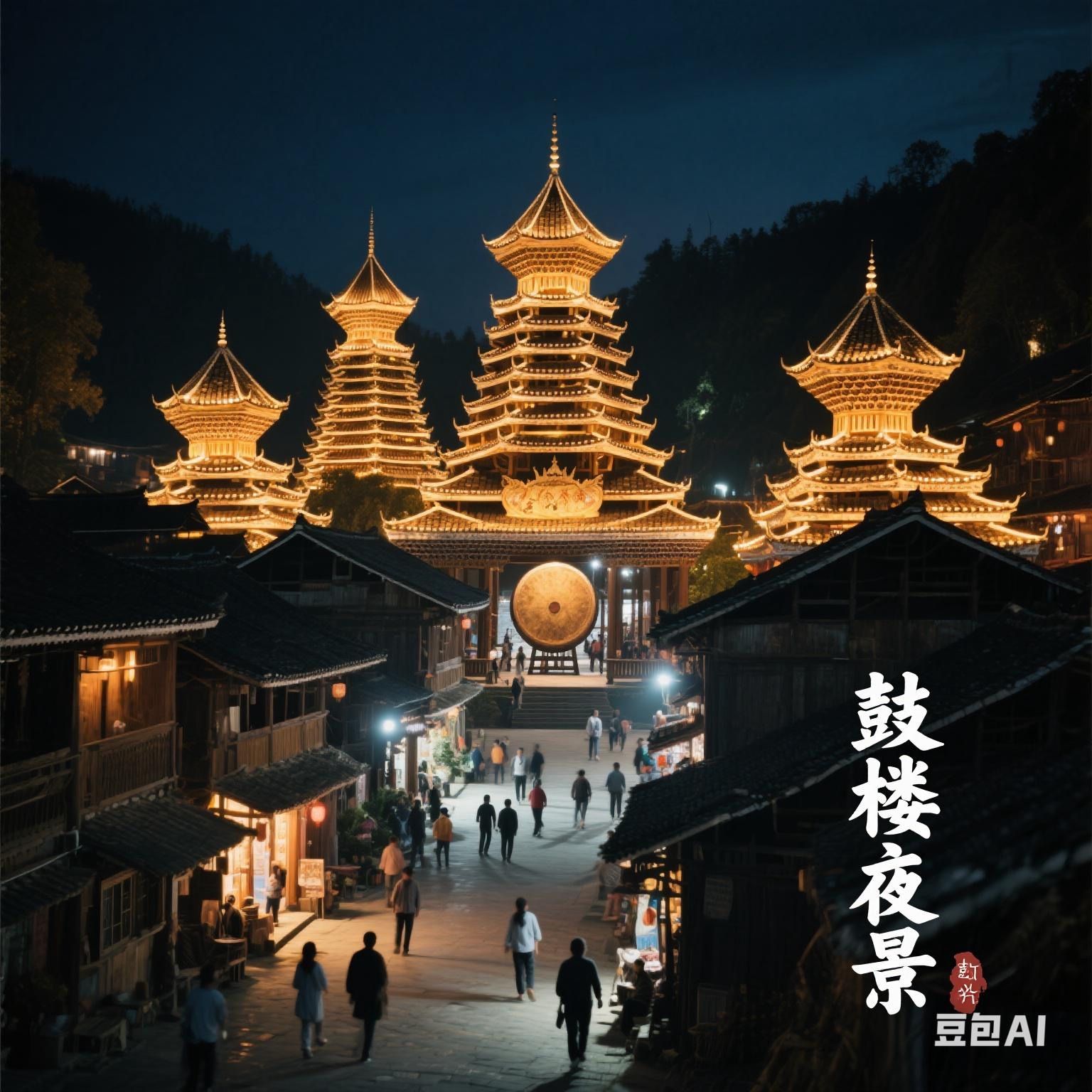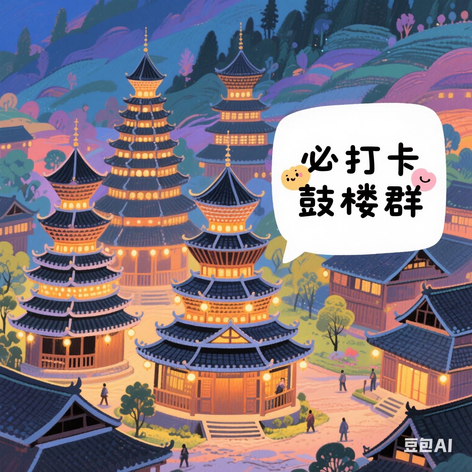 **鼓楼群**——侗寨的灵魂建筑,五座鼓楼各具特色,夜晚灯光亮起,美得不像话!
