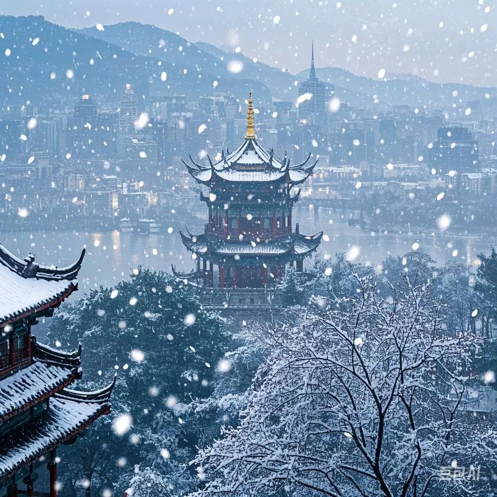 你瞧,黄鹤楼在雪中显得更加庄严巍峨,仿佛一位身披银甲的将军,守护着这座城市。东湖的湖面也结了一层薄薄的冰,远处朦胧的雪景,更是增添了几分神秘感。 这雪后的武汉,安静而美好,空气中弥漫着淡淡的雪的清香,让人心旷神怡。