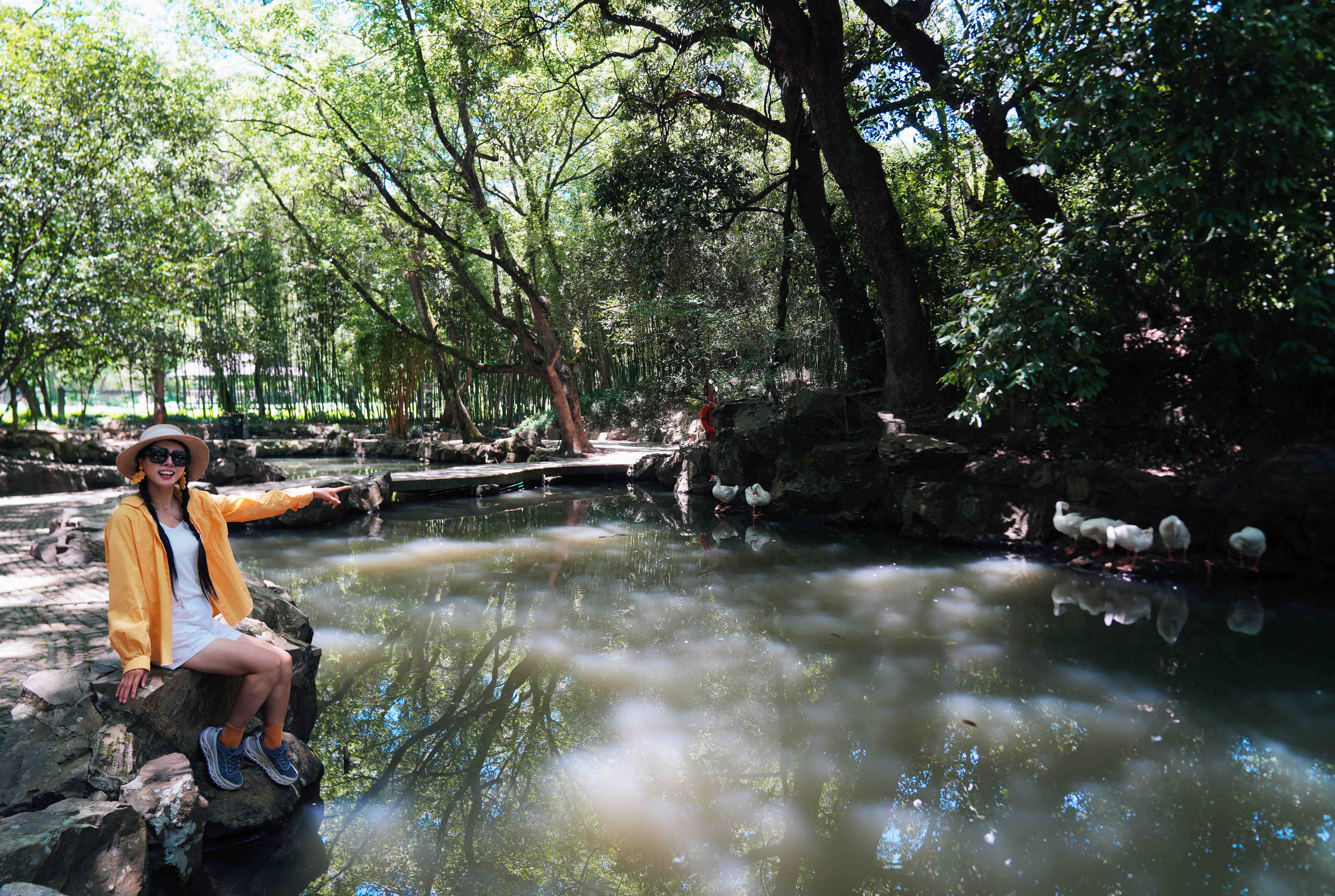一入景区,喧嚣骤然被层层叠叠的翠竹滤净,我站在鹅池畔,看大白鹅悠然划开绿绸般的水面。在曲水流觞处驻足,仿佛千年之前那场醉倒历史的文人雅集余韵未绝。