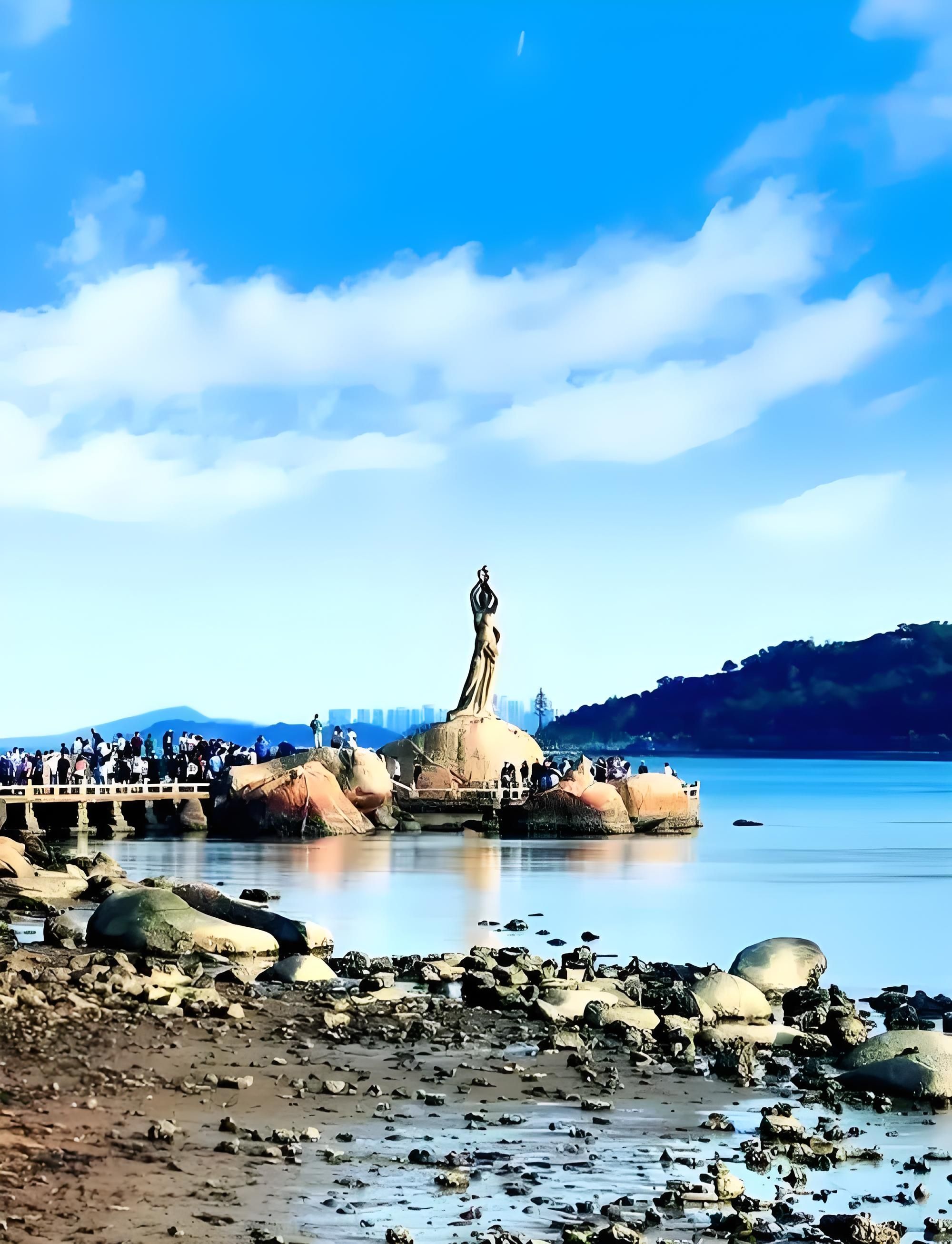 - 珠海渔女:抵达珠海后,前往情侣路的珠海渔女景点,它是珠海的地标性建筑,可在此拍照打卡。
