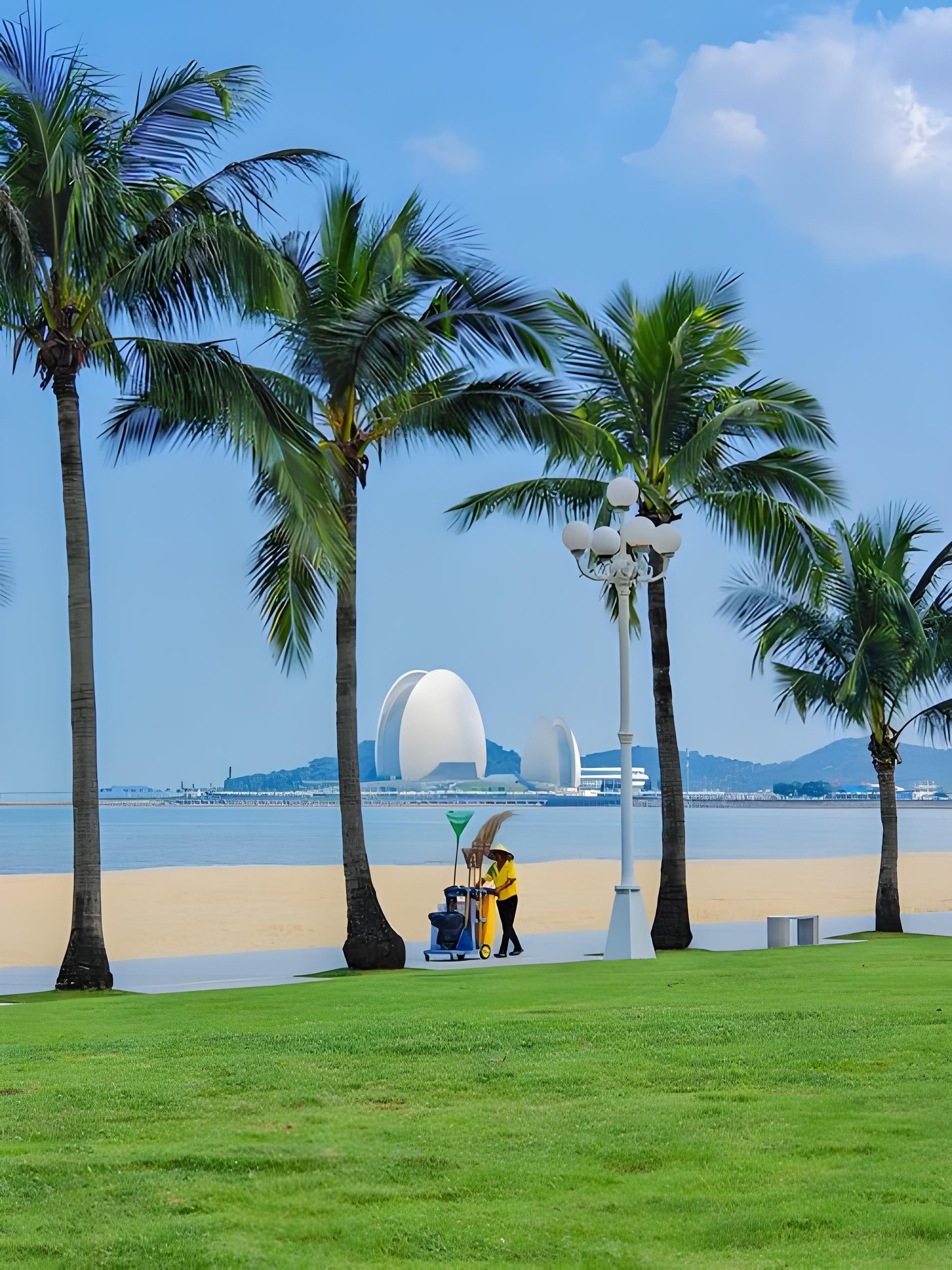 - 野狸岛:与珠海大剧院相邻,上岛散步或骑行,环岛欣赏海景和城市风光,打卡日月贝的最佳拍摄机位。