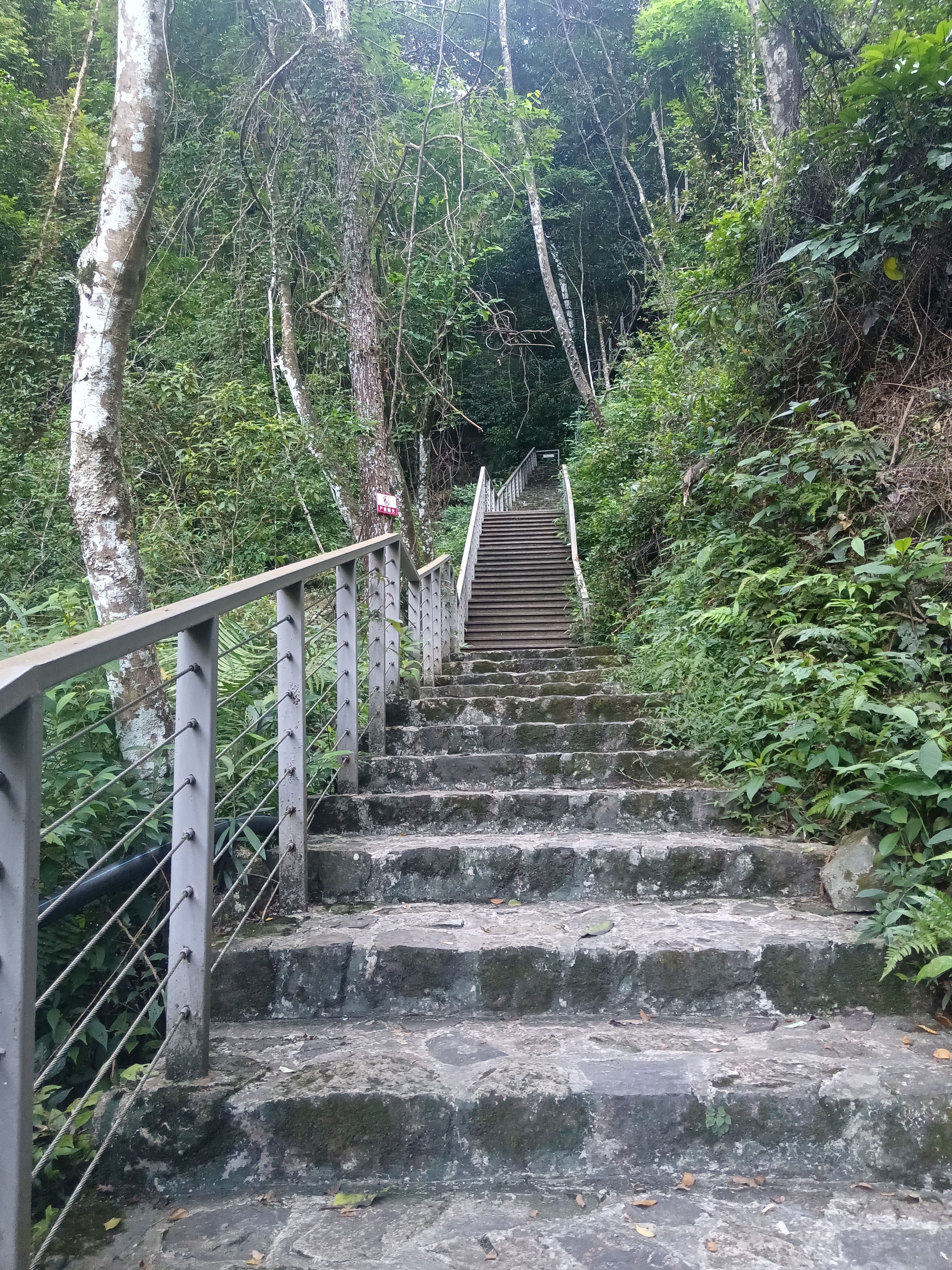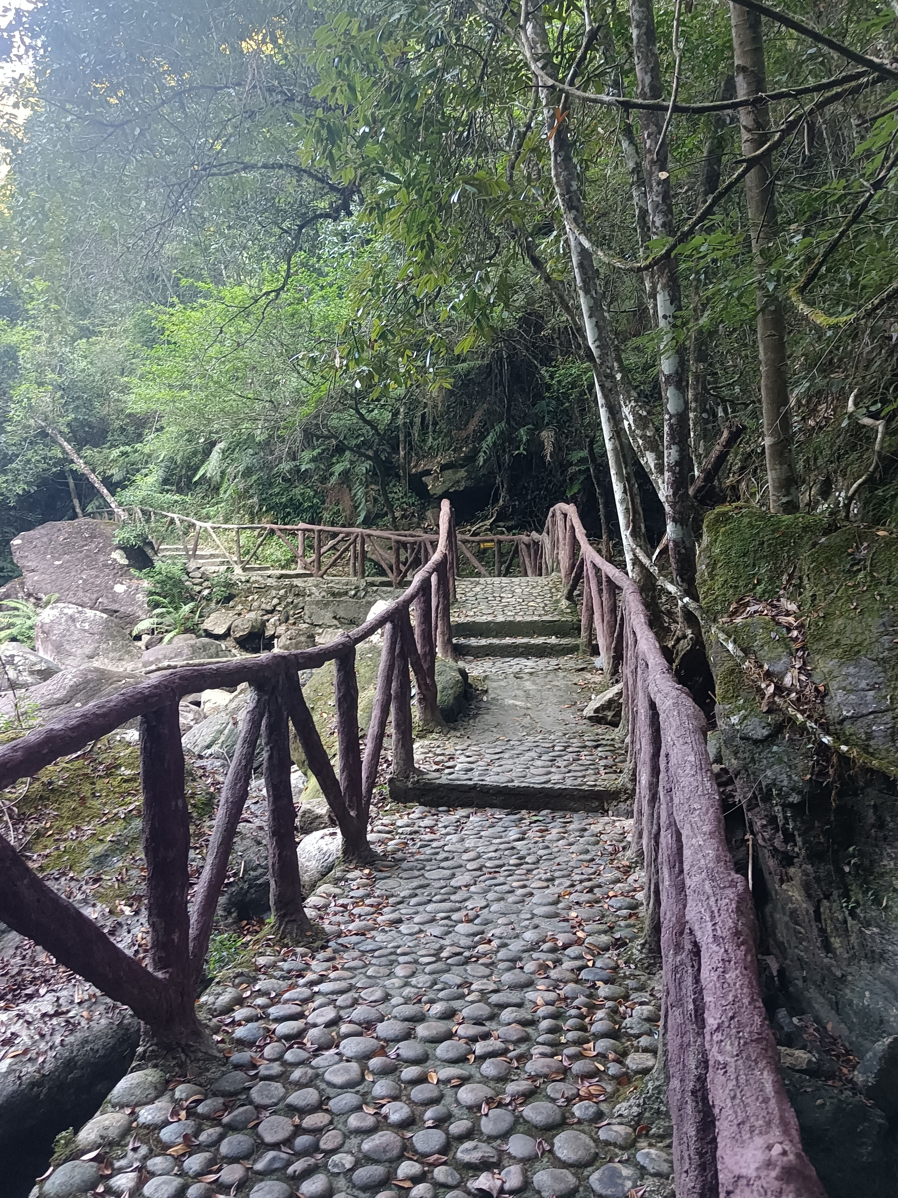 此行的核心目标,是攀登景区内的山路,一睹赤壁瀑布的真容。沿着溪流逆流而上,登山步道修缮得比较完好,坡度平缓,走起来并不费力。一路上,怪石嶙峋,古藤缠绕,移步换景,趣味横生。