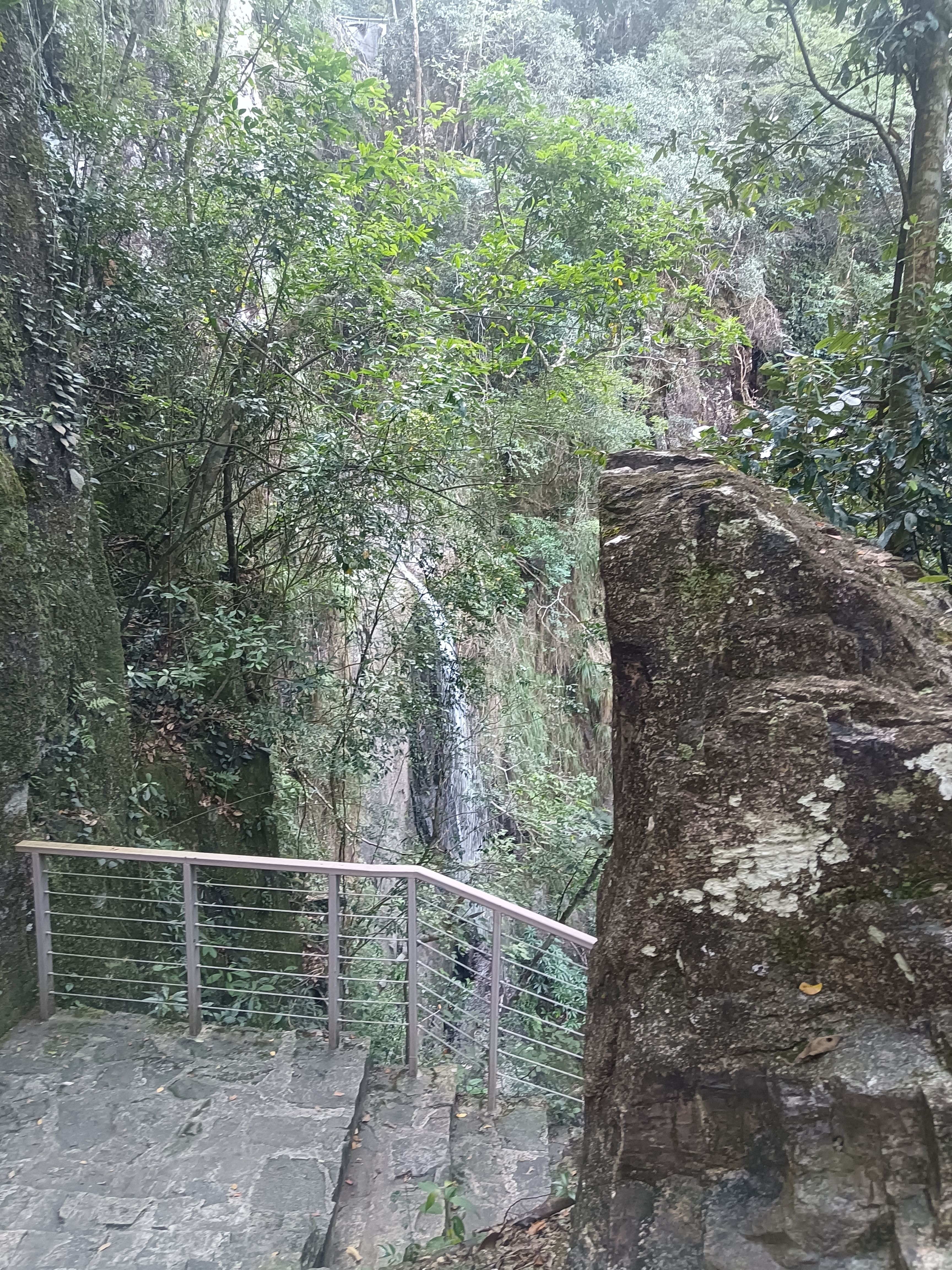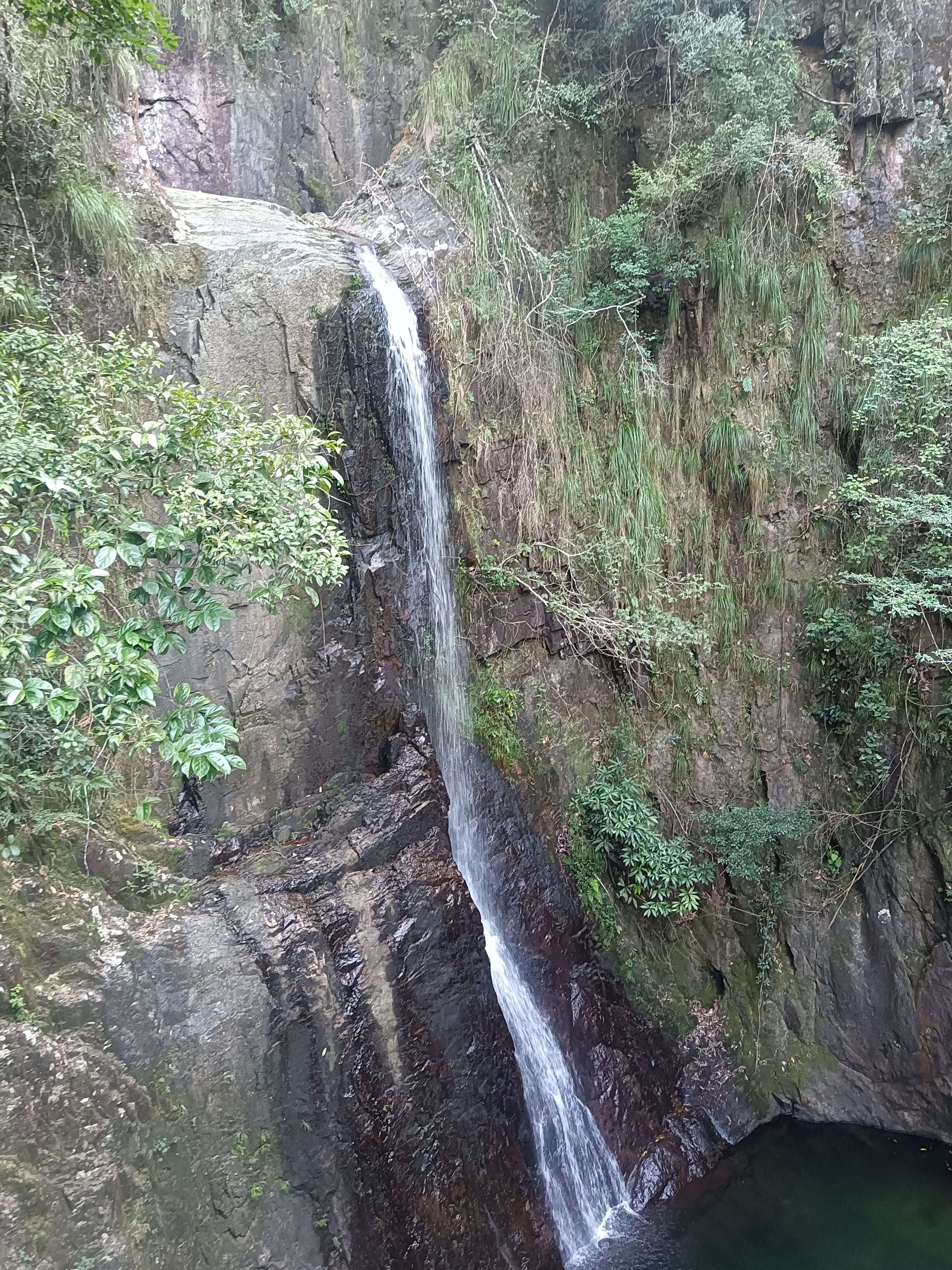 越往深处,水声愈响,从若有若无的背景音逐渐变为清晰的轰鸣。我们的心情也随之愈发期待。然而,当瀑布最终完整地呈现在眼前时,我脱口而出:“啊,比想象中要秀气一些。”