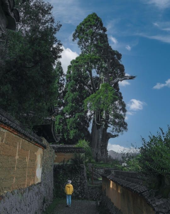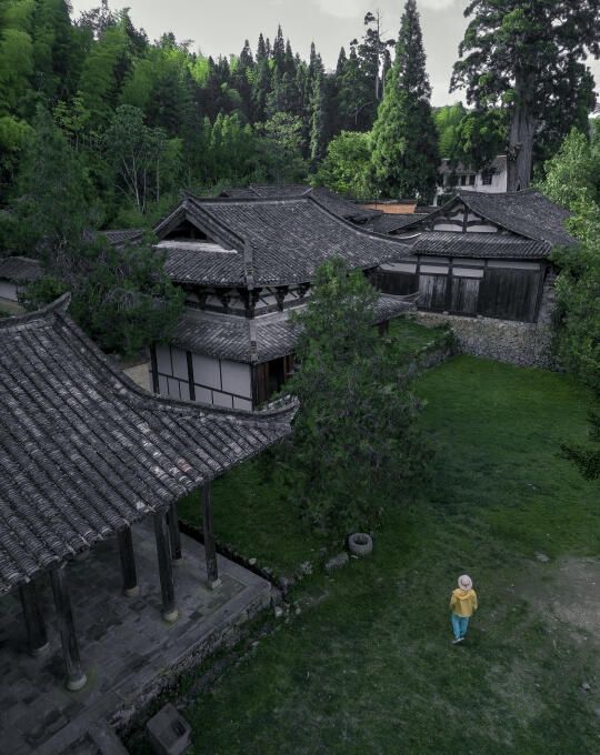 这里有一座被称为 “穿越时空之门” 的山门,天气晴朗的上午,阳光洒下,光影效果绝佳。从无人机的视角俯瞰院内的千年古树,那种震撼之感,会扑面而来,实在值得大家前往一探究竟 。