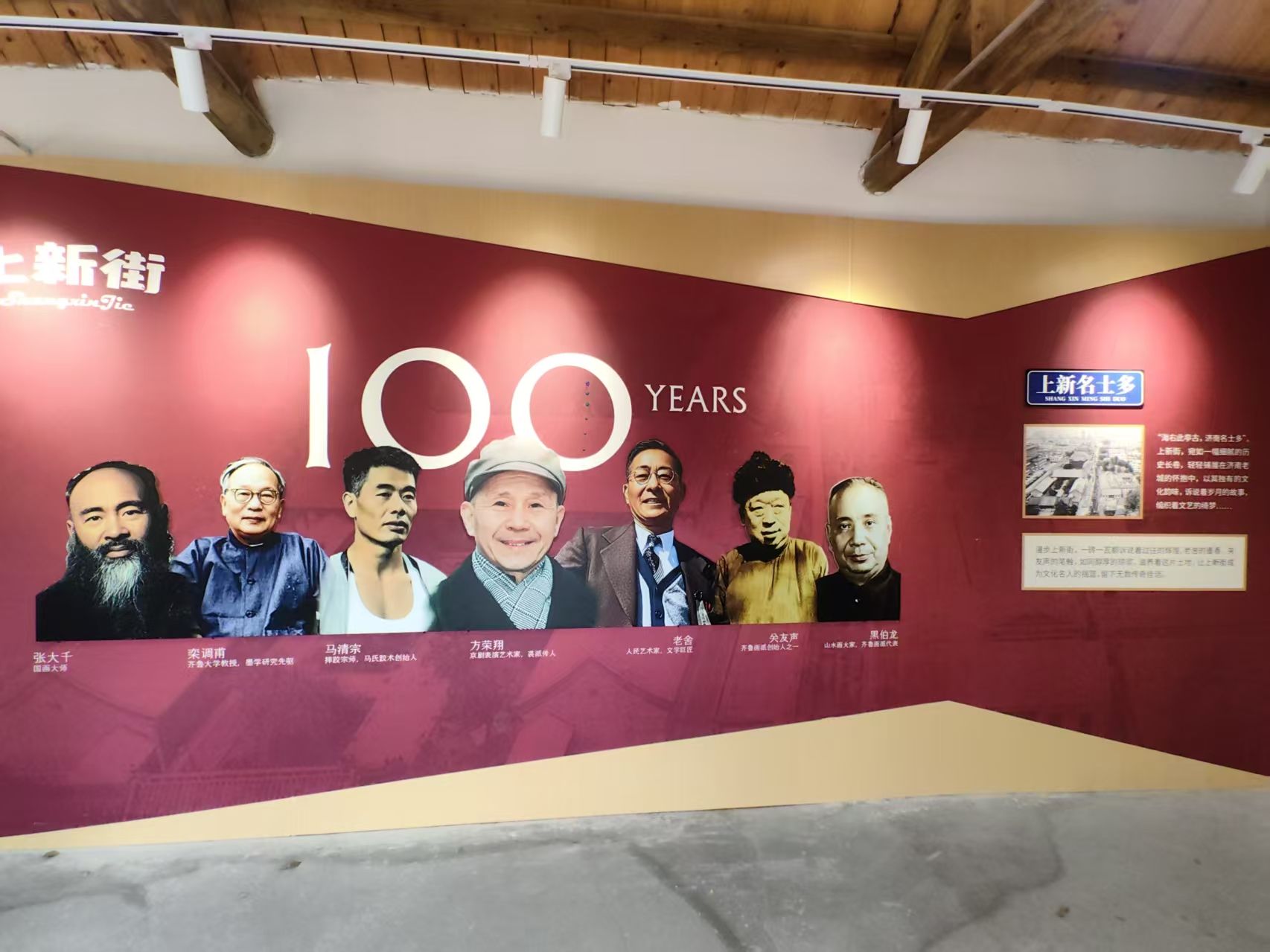 从南头进,看到的第一个老宅院就让我很有感:一溜在此居住或留下足音的近现代大师照片,左向右——张大千、栾调甫、马清宗、方荣祥、老舍、关友声、黑伯龙。心中油然冒出欧阳秉森老师那首诗: