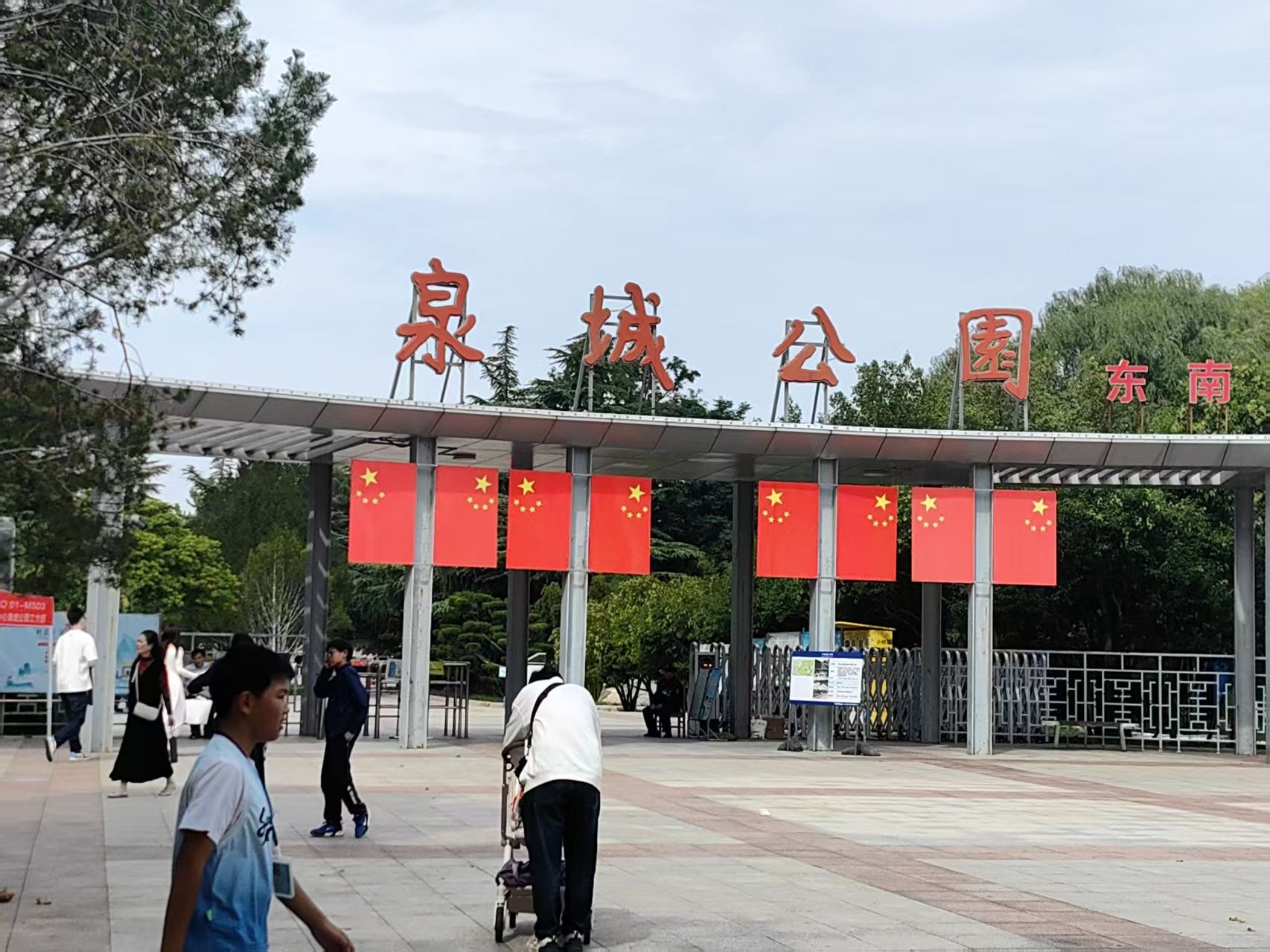 泉城公园至少西南门、南门进行氛围营造,但是从双节首日情况看,游客比较稀少,估计都外出或者猫在家里休息了。