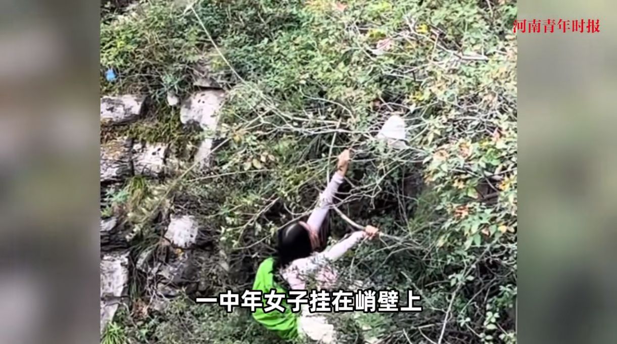 此刻她正死死的抓住藤蔓,周围的游客没有结实的绳子,但是又担心消防救援赶来时已经为时已晚,女子没有力气了或者藤蔓断了,都可能导致悲剧发生。