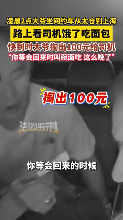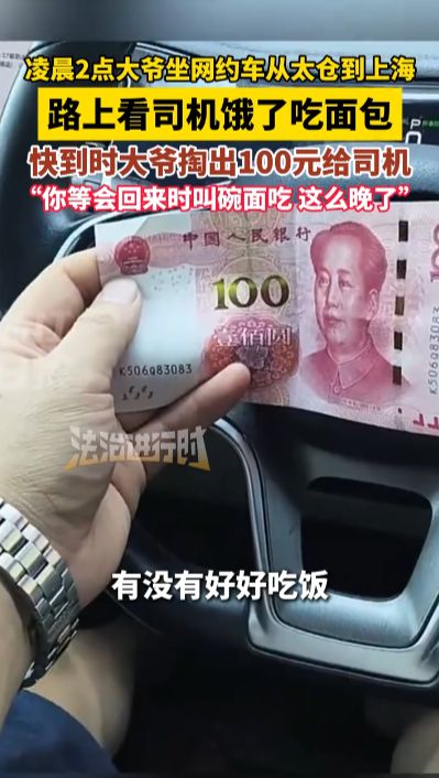 信息来源:《凌晨2点大爷坐网约车从太仓到上海,路上看司机饿了吃面包,快到时大爷掏出100元给司机》法治进行时