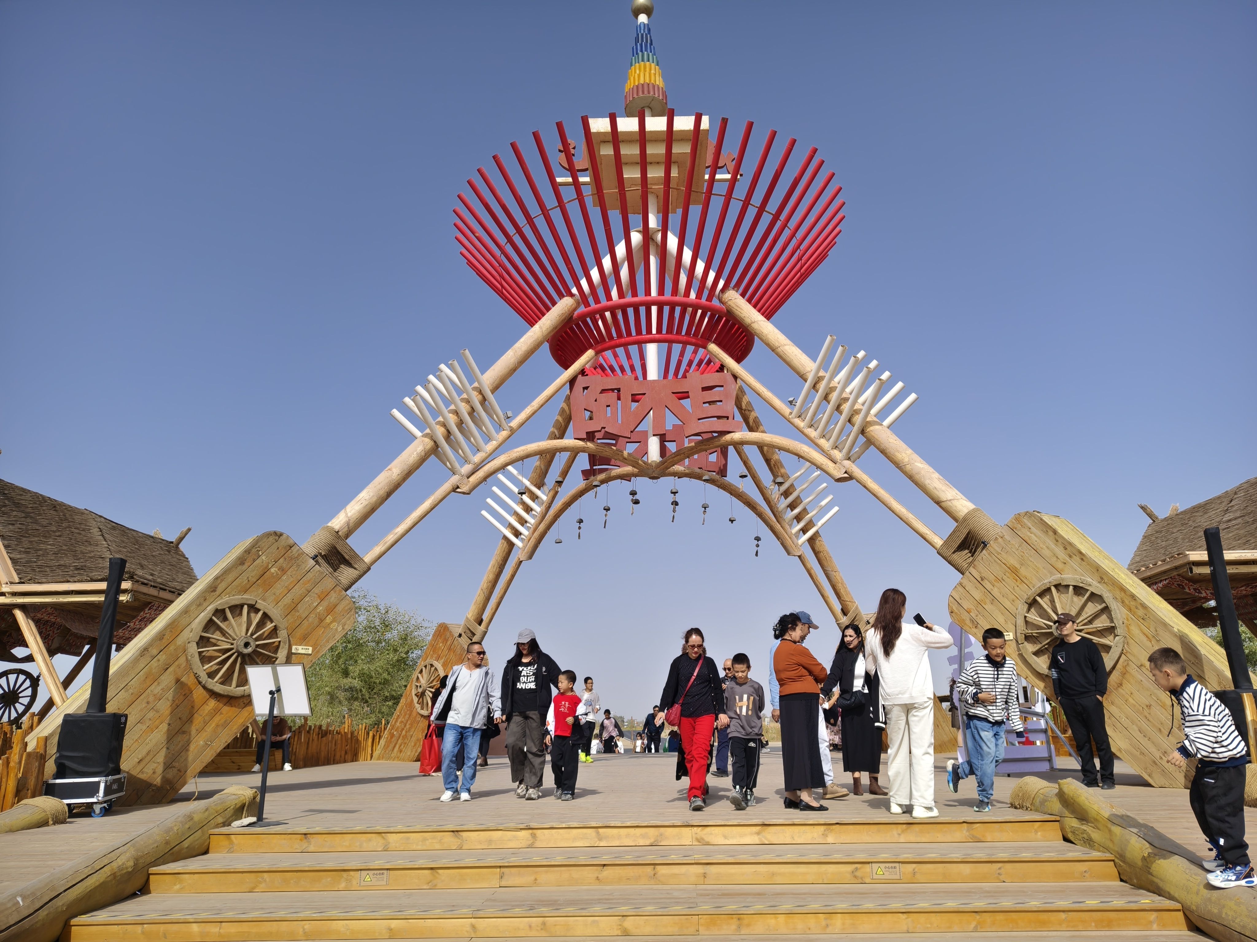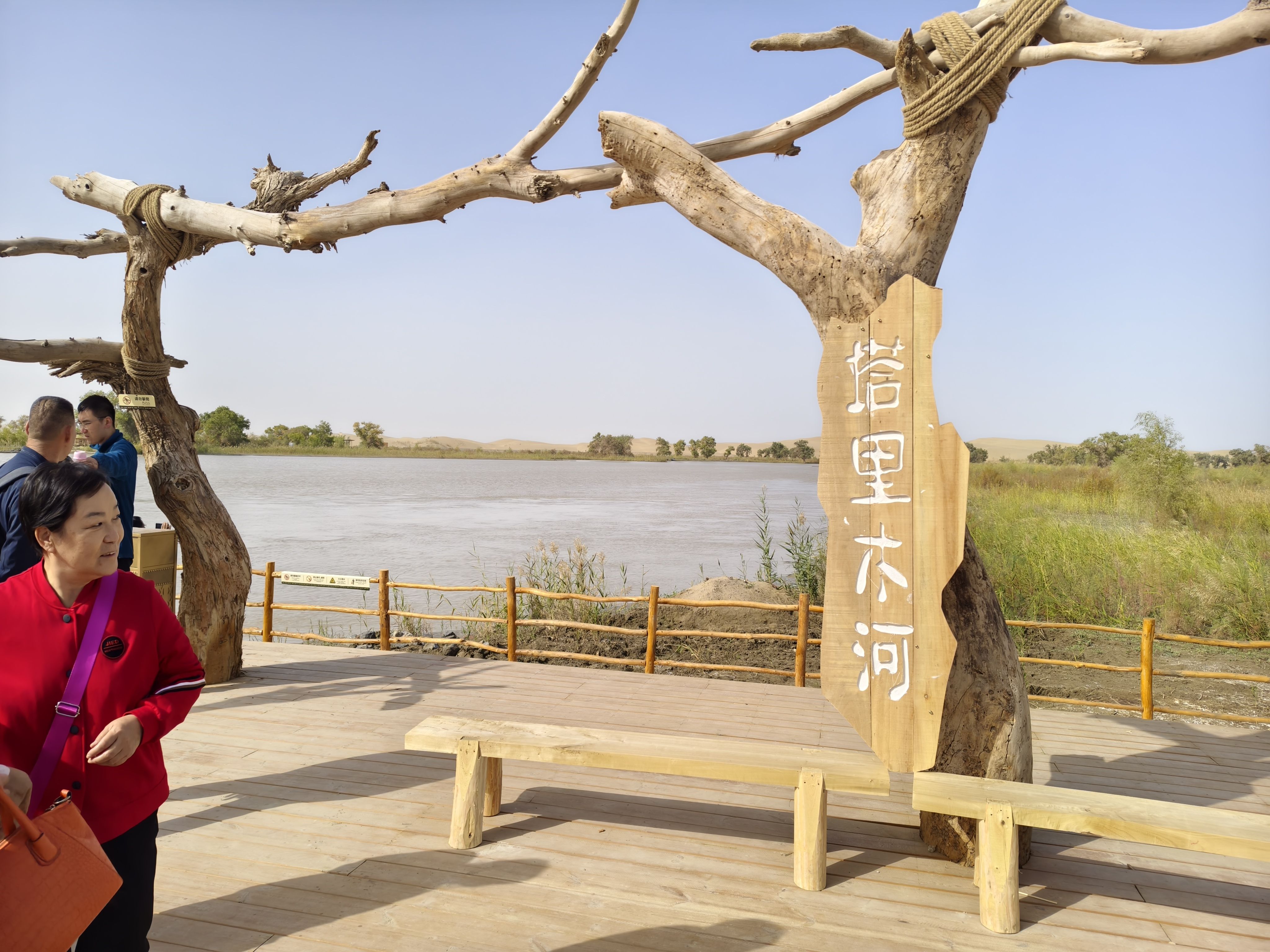 国庆旅游第四天。2025年10月6日,中秋节,大晴天。早上宾馆前旅游车来接,到国家4A景区—罗布人村寨,听说正在升5A。主要景点包括罗布人传统村落、塔里木河、塔克拉玛干沙漠、神女湖等。我们做了越野车冲浪,一路沙漠横行,真是惊险刺激,直接送到沙漠腹地,体验了滑沙,烤鱼是特色,吃饭和纪念品等有点小贵,见了百岁老人。下午旅游车送到国家4A景区、国家二级博物馆—巴州博物馆,馆藏文物7000余件,镇馆之宝有狮纹地毯、楼兰彩棺、楼兰美女干尸和粟特文银碗等,挺现代化的一个馆,我盖了戳留念。随后打车来到龙山公园,位于库鲁克山制高点,全景观景台,俯瞰库尔勒市全景。我们走了网红打卡点:280米的9D玻璃天桥,滑道下桥。过山车、摩天轮等游艺设施都没有玩。晚上又来到亲水湾小区对面的天鹅河乘船入口,乘坐夜游船,从民生桥依次穿过七座桥至喀拉苏桥音乐喷泉后原路返回,五彩斑斓的喷泉喷射出各种造型,好漂亮!在船上看库尔勒市的夜景好美。天鹅河、孔雀河、杜鹃河,为库尔勒市增添了无限品味,城市上了档次。北方的城市,没有几座市内有条宽阔的景观河、并且游船可以穿行其中的。40多分钟的水中漫游30元很值。膳缘饭店米饭菜后结束今天的行程。明天下午5:30的火车返回乌鲁木齐。明天还有半天的时间,铁门关景区继续。