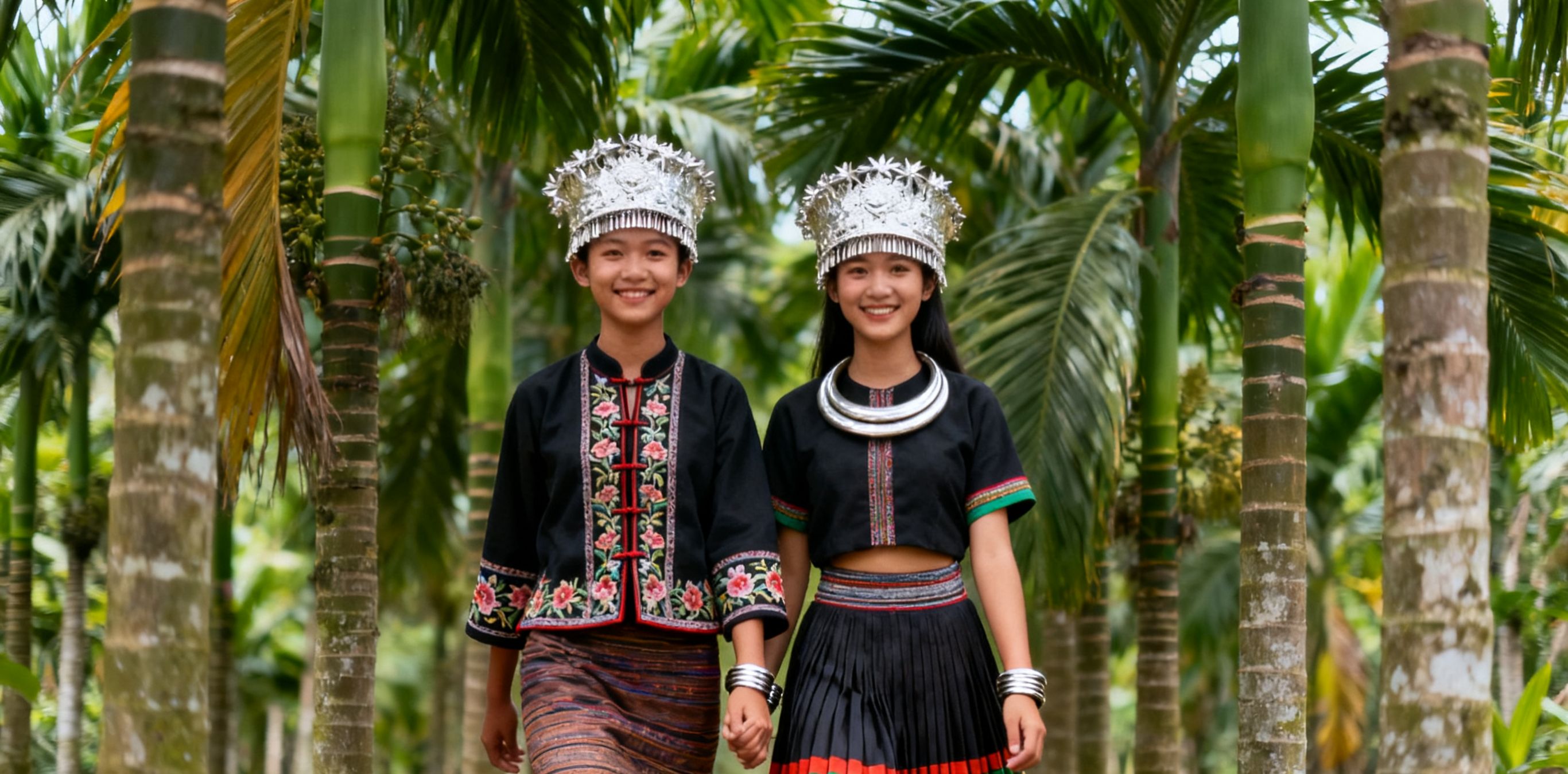 这里同住着黎族和苗族同胞。若是赶上“三月三”,能听到山歌对唱、看到竹竿舞,甚至尝到五色饭和山兰酒。一位黎族阿姐告诉我:“我们的文化,就藏在山歌和织锦里。”她手里的黎锦,图案繁复,一针一线都是故事。
