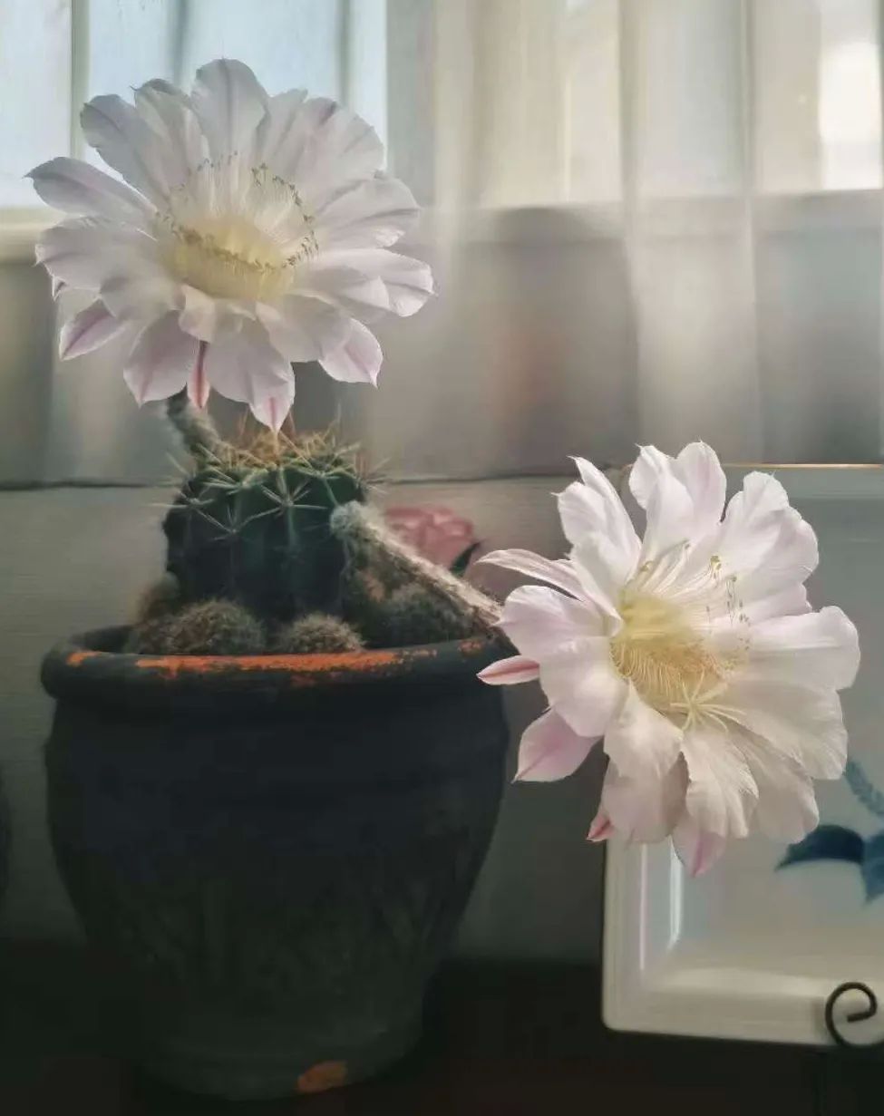 已经10月了家里的仙人球又开了,第四次盛开非常漂亮!
