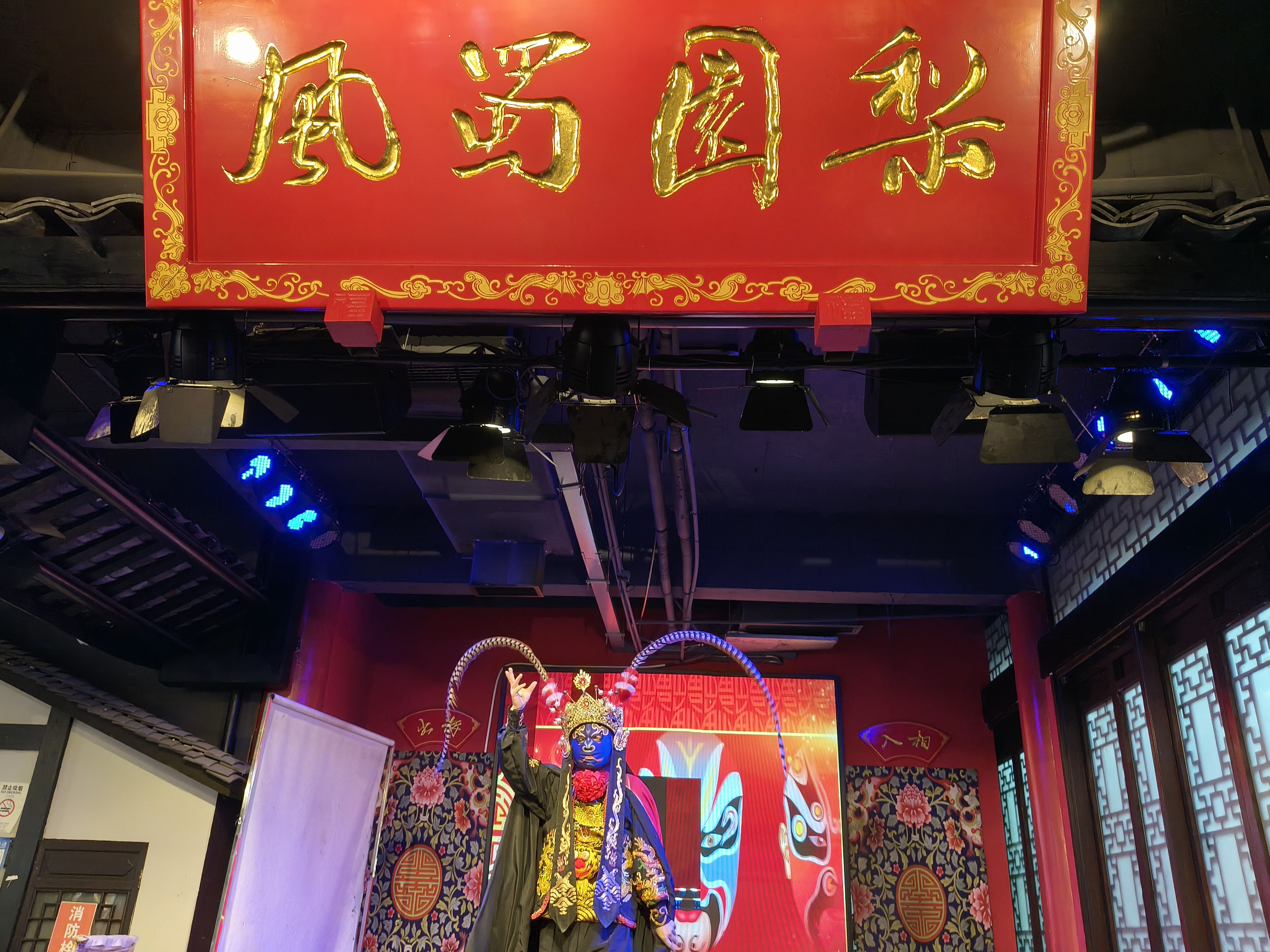 第一站打卡武侯祠。门票50元/人,讲解费30元/人。跟着讲解员游览完重点景点后,便自行游玩,大概花了2小时。从武侯祠径直走到“锦里古街”,那里几乎全是成都小吃。我买了些点心,还在“三国茶楼”喝茶,观看了一场川剧表演。