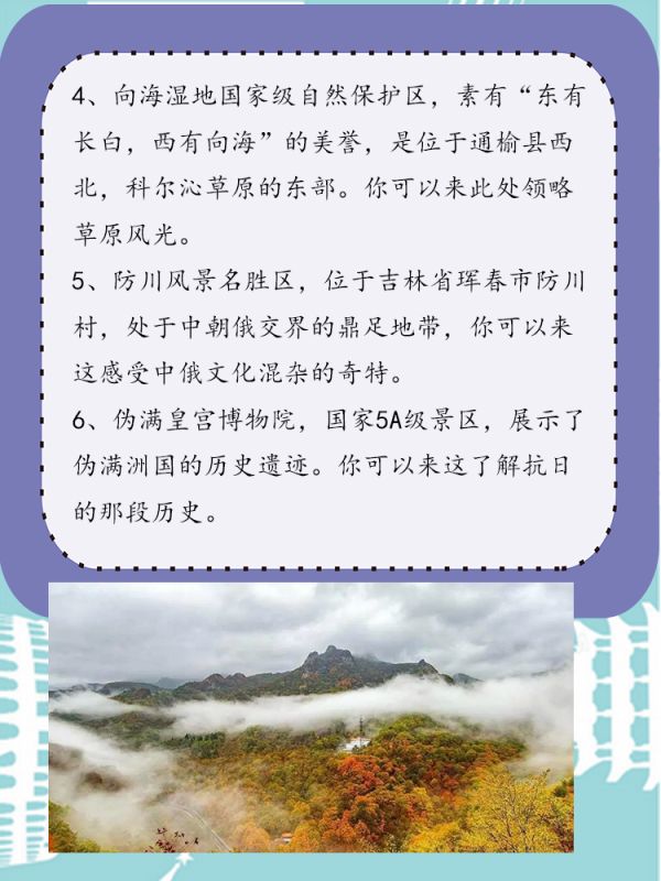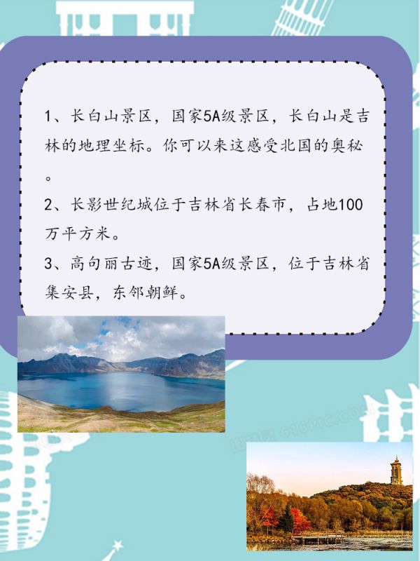 1、长白山景区,国家5A级景区,长白山是吉林的地理坐标。你可以来这感受北国的奥秘。