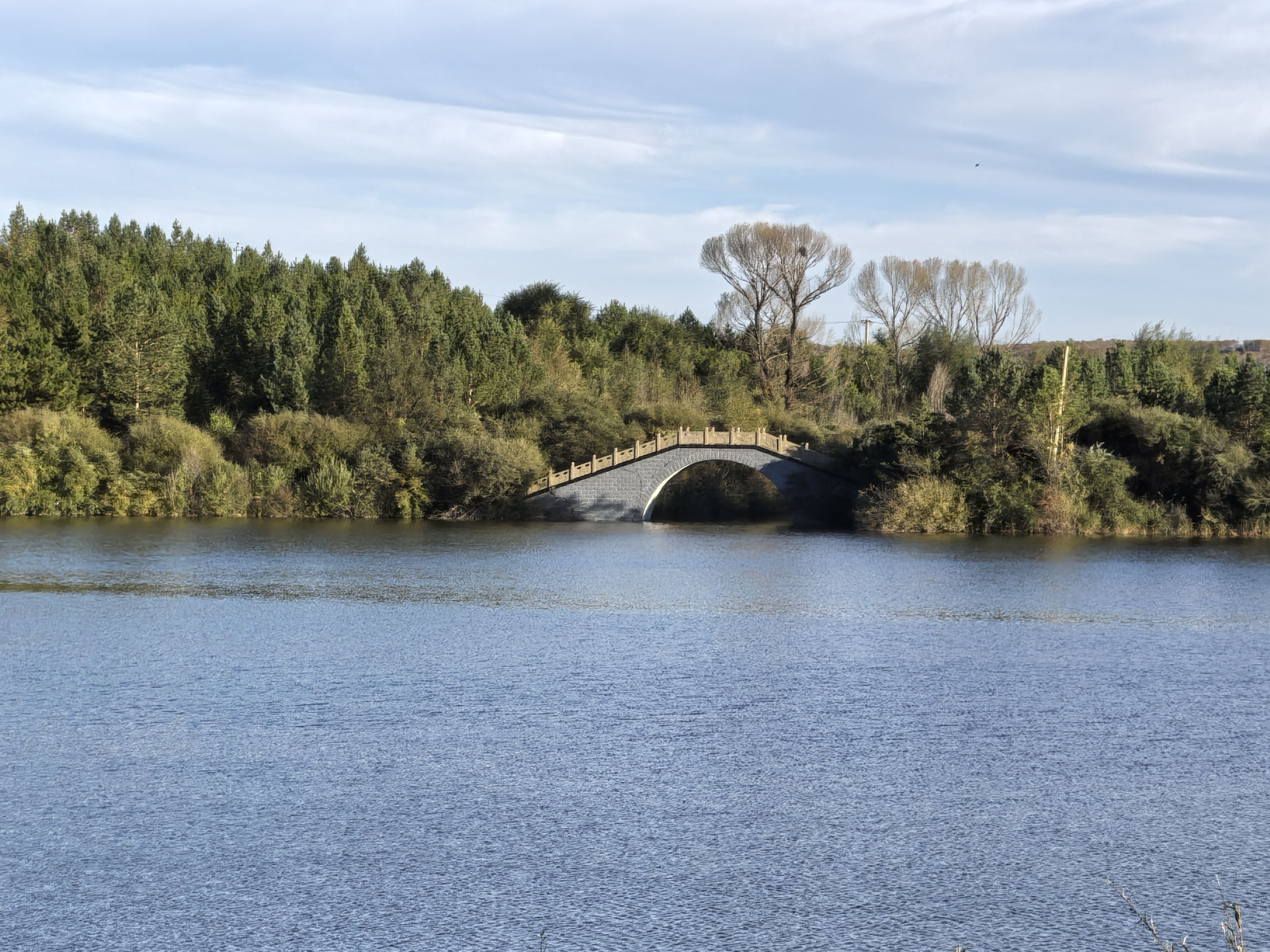 这座公园堪称“绿水青山就是金山银山”理念的生动典范。谁能想到,这片如今山水相依、绿树成荫的宝地,曾经是风沙肆虐的不毛之地?我们从西门驾车进入,在公园内绕行。园内湖泊如镜,层林尽染,亭台点缀其间,景色之美,完全超乎我们对塞北边城的想象。从东门驶出时,心中满是震撼与敬佩,右玉人民数十年的艰苦奋斗,真的创造了绿色的奇迹。