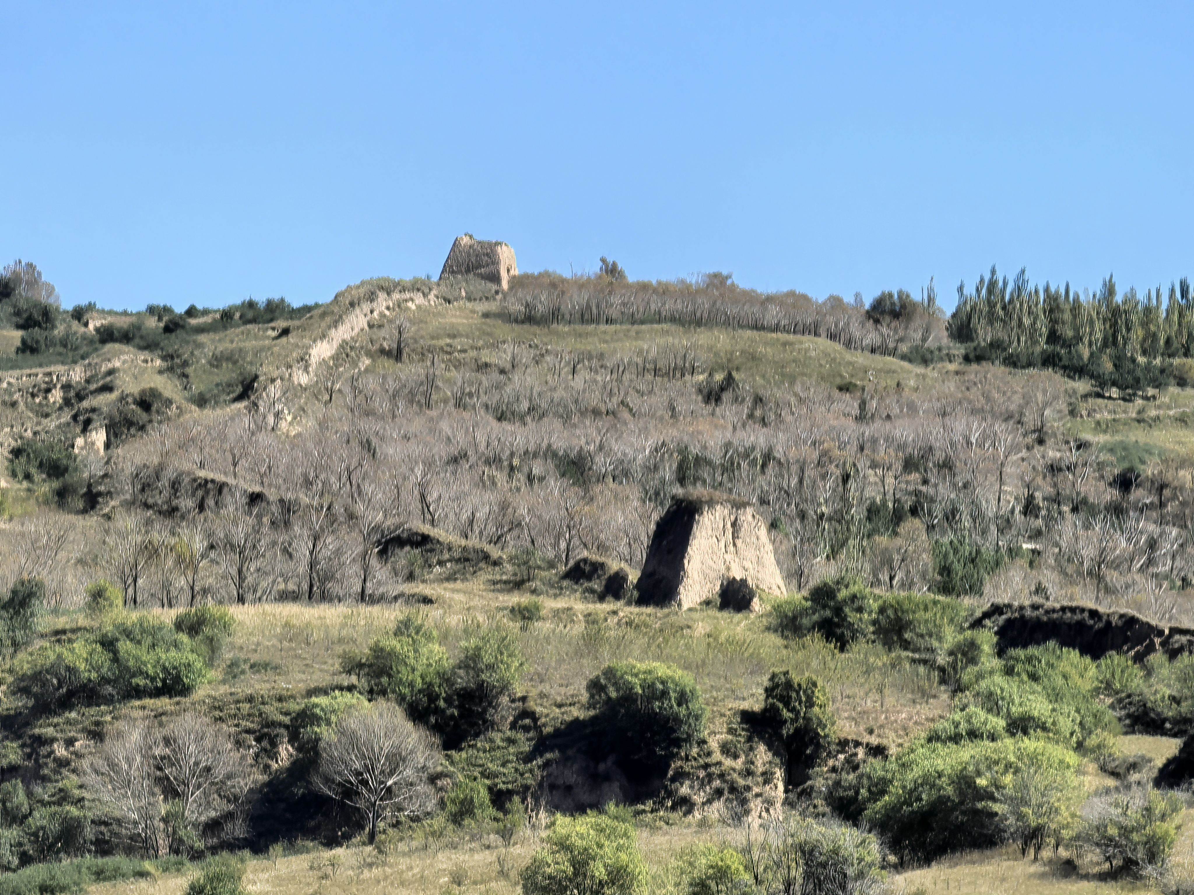 随后,我们登上了旁边的长城遗址。脚下的砖石残破不堪,站立其上,朔风劲吹,放眼望去,沟壑纵横。遥想当年,戍边将士在此守卫疆土,逃荒民众由此踏上未知前程,历史的沉重感扑面而来。