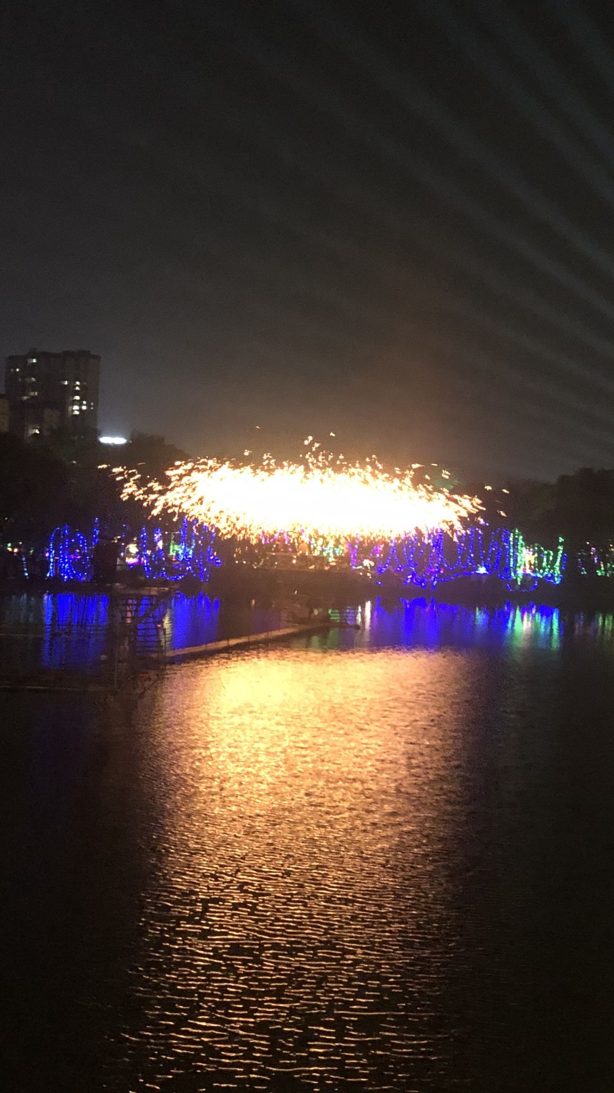 晚上湖面的灯光喷泉表演与游船夜游项目互动是一大亮点。