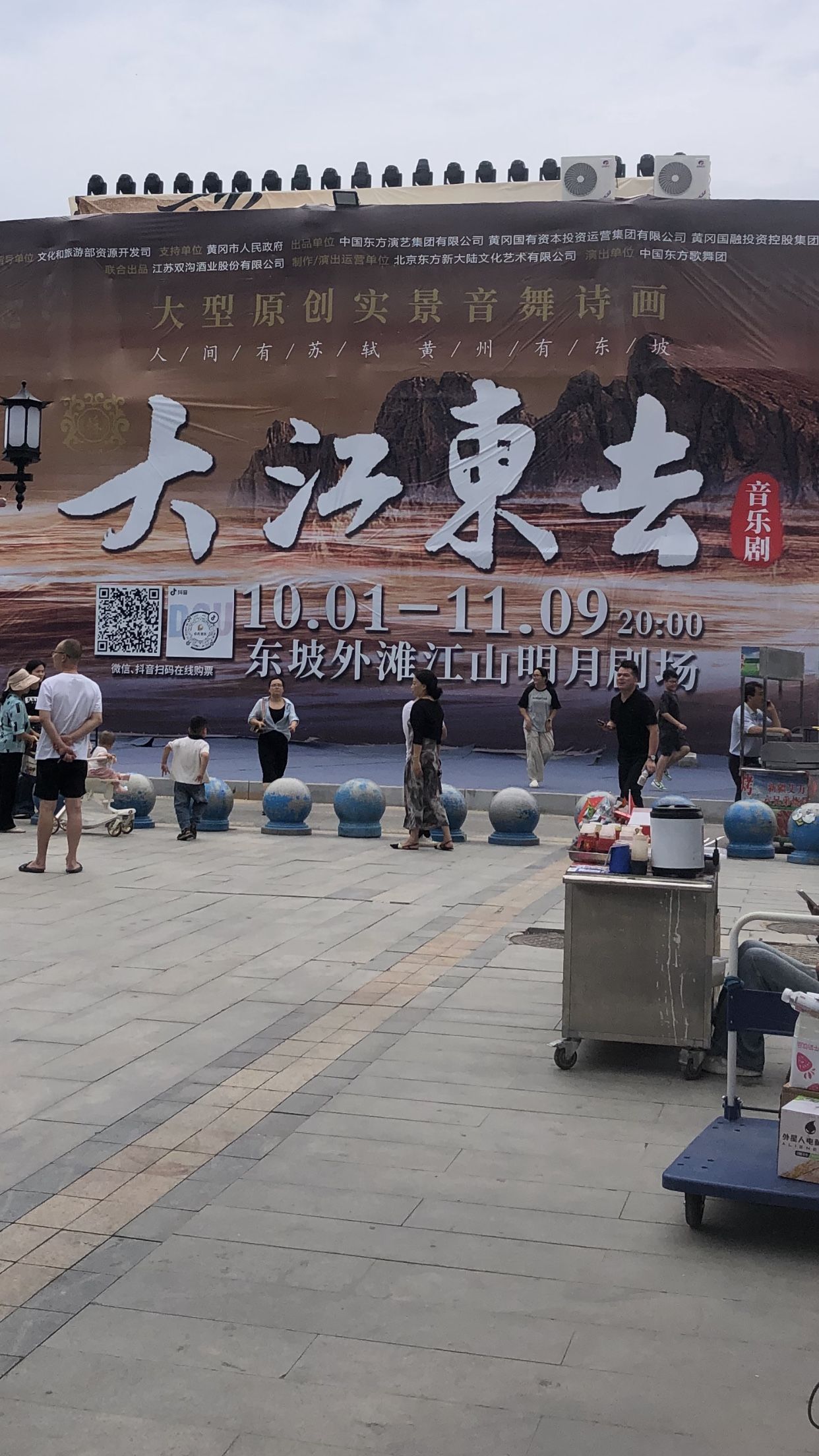 今天是10月2日,去黄冈市黄州城区遗爱湖公园游览。首先映入眼帘的是大江东去实地情景剧演出的宣传海报,再就是湖上游船游览项目,还有夜晚的湖面灯光展演和千灯灯会游园展演等项目,还有黄梅戏演出。