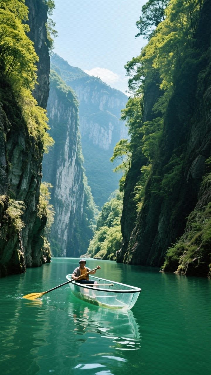 两岸峭壁千仞,瀑布如银线垂落,呼吸都是负氧离子的味道。