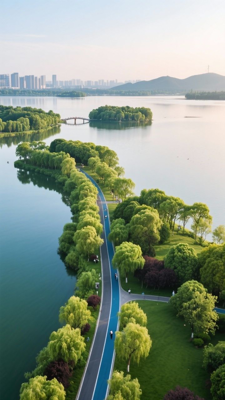下午坐公交到【东湖绿道】,租共享单车骑行(免费!),推荐路线:听涛景区磨山北门荷园,一路梧桐遮阴,湖光山色美到失语。