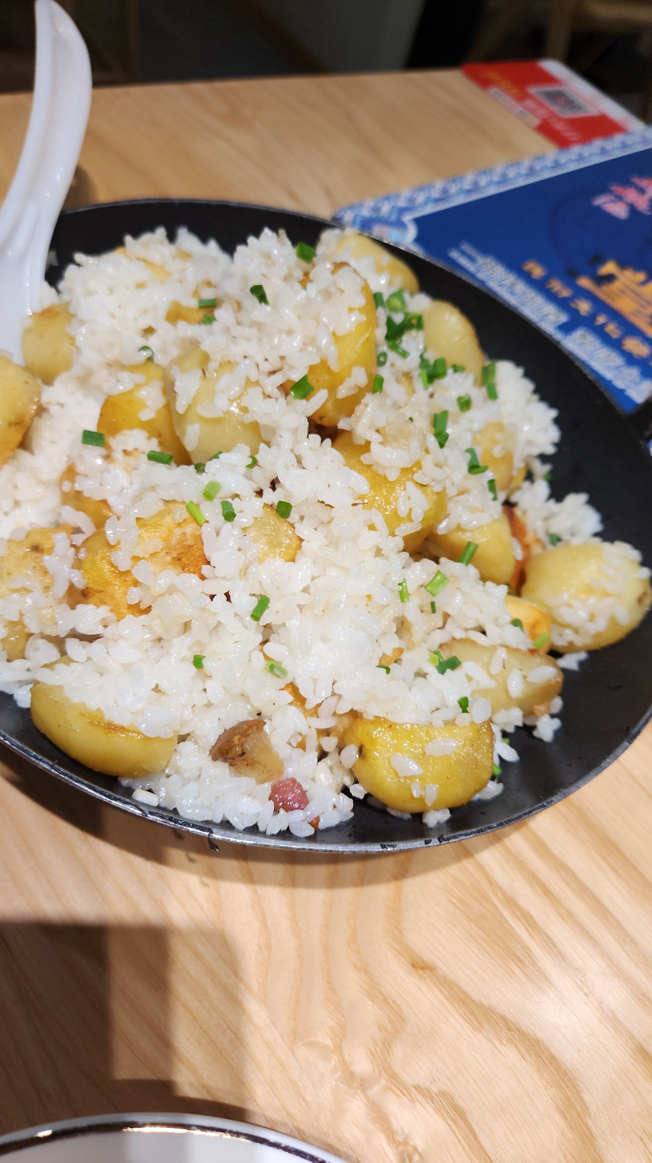 合渣建议大家不要买原价50元一份的,买坑了你肯定差评店家[黑线]。可以美团上买的团购20元左右价位的,万一吃不惯,也算尝试过了。其实就是豆腐渣+肉沫+白菜碎。端上来的第一反映这不就是食吗?尝了一口,好吧,我爱吃[捂脸]。吊锅饭就是腊肉土豆米饭,腊肉很少,基本就是腊肉熬出来的油炒的土豆和米饭,土豆很多,但是好吃的,吃得惯腊肉香的可以尝试。我是美团团购的大峡谷附近的一家店,基本都在20以内的价格。胃口小的点这两样尝尝味道,也能吃饱了。