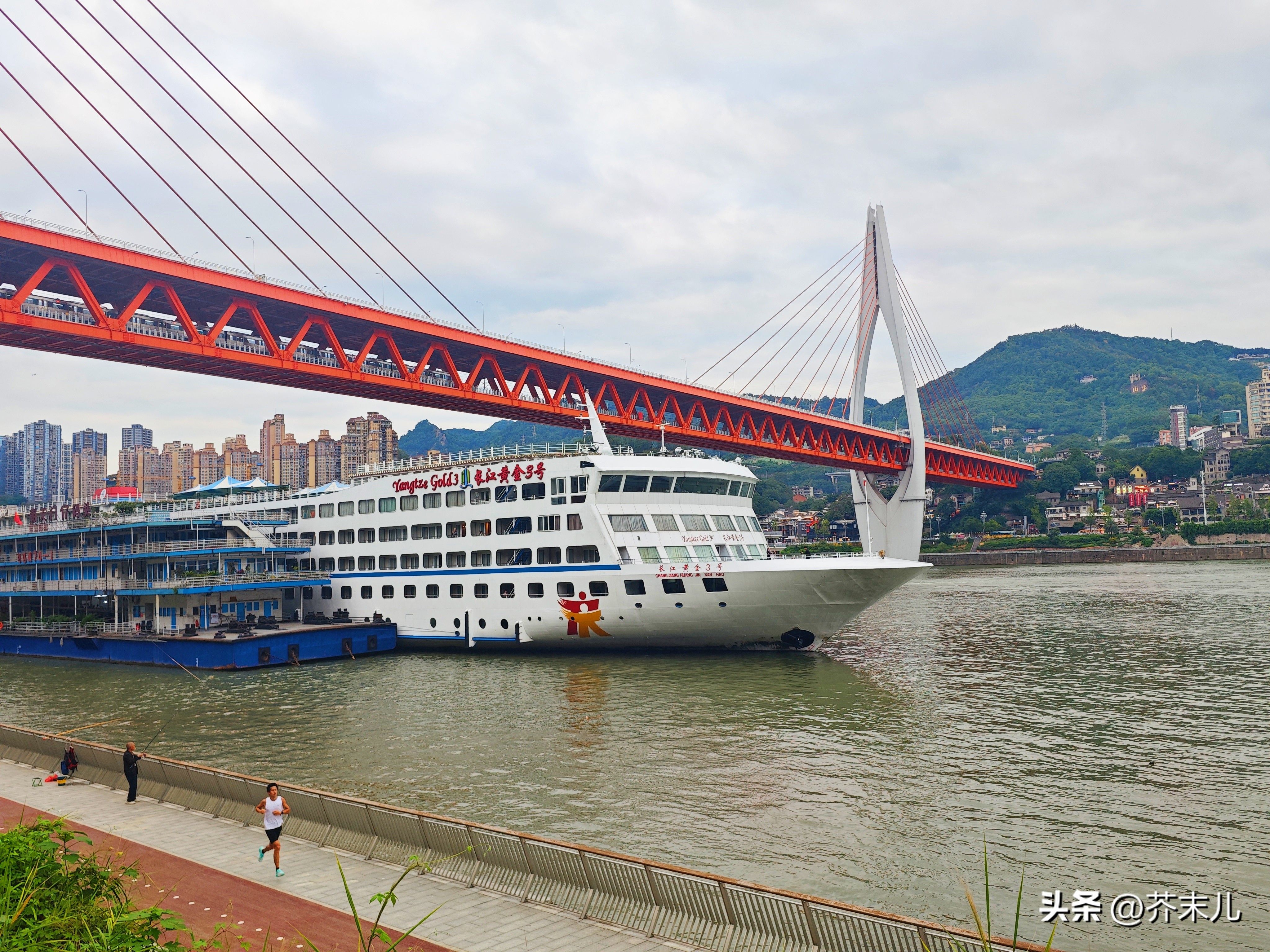 白象街区人很少,直接走到江边,走过一个个码头,看到江里停靠着不少游轮。