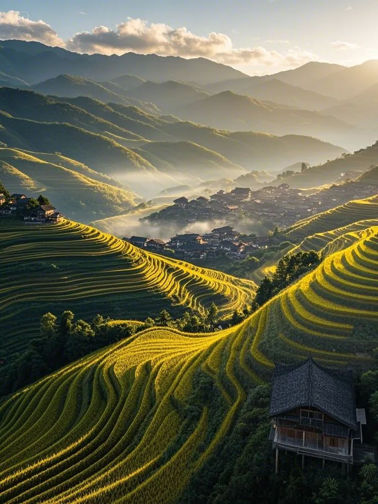 推荐理由:壮瑶族人世代耕作的梯田,春夏绿意盎然,秋季金黄灿烂,宛如大地的指纹。