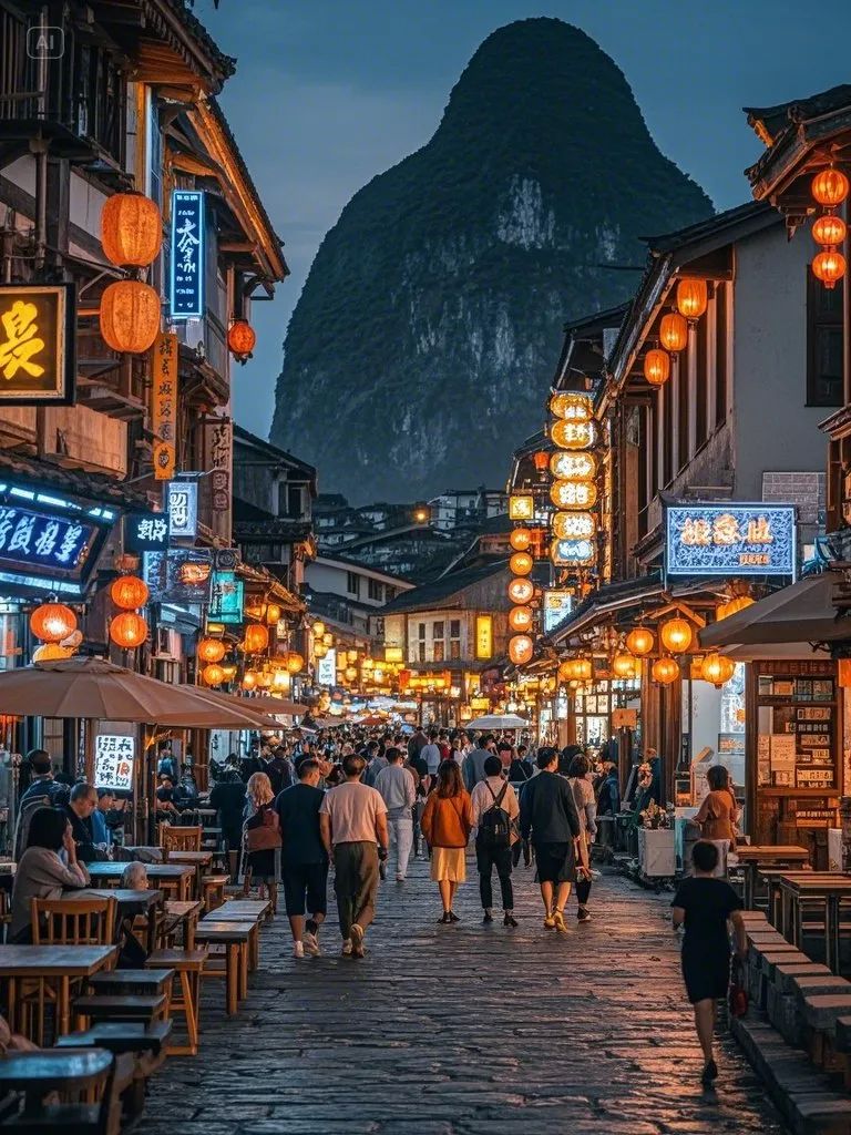 推荐理由:阳朔最热闹的步行街,夜晚灯火璀璨,酒吧、咖啡馆、手工艺品店林立,适合拍照打卡。