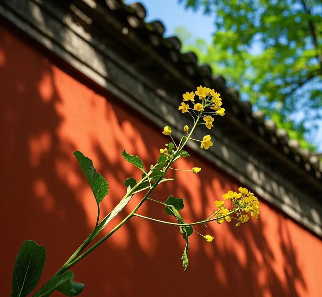 - 中国最早官方武侯祠,古柏参天,春季海棠与油菜花同框。