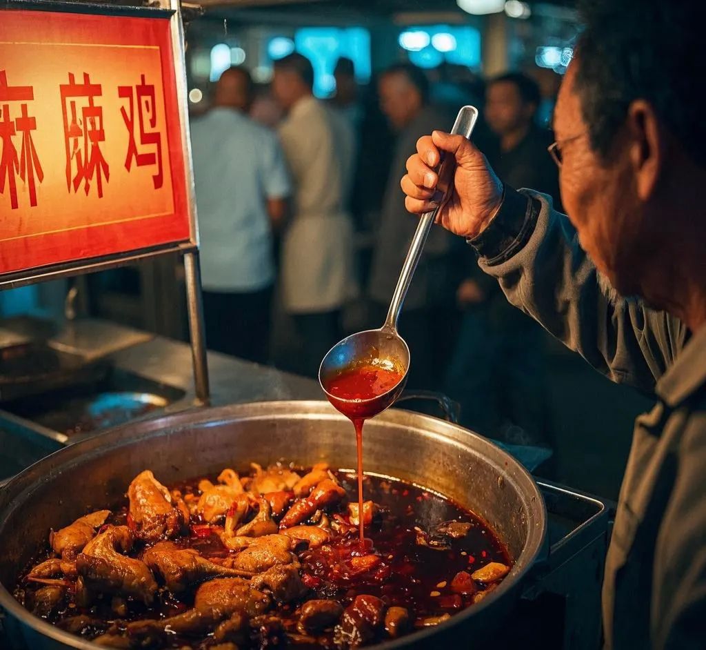 王婆麻辣鸡:麻辣鲜香配冰镇汉斯啤酒(夜市摊人气王)。