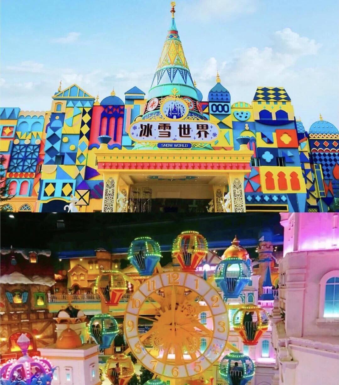 • 白色城堡:由雪花石筑成的城堡中,水晶吊灯与冰雕花窗相映成趣。乘坐“永恒之钟”摩天轮缓缓升至30米高空,俯瞰整个冰雪世界,360度全景视角让城堡的尖顶与冰湖的波光尽收眼底。