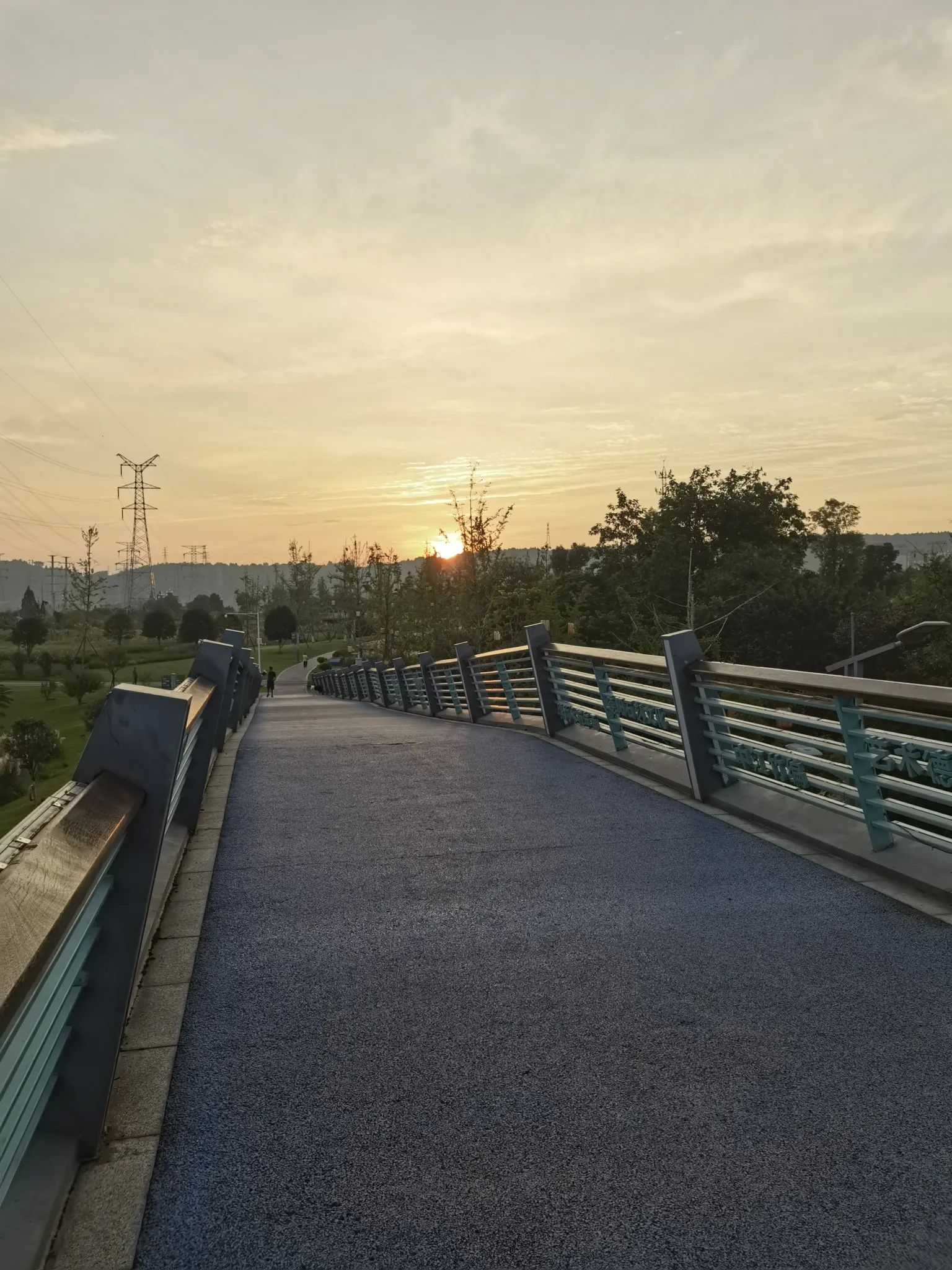 站在柳梢堰湿地公园的人行天桥上观赏日出,此时此刻,东山的风景独好。