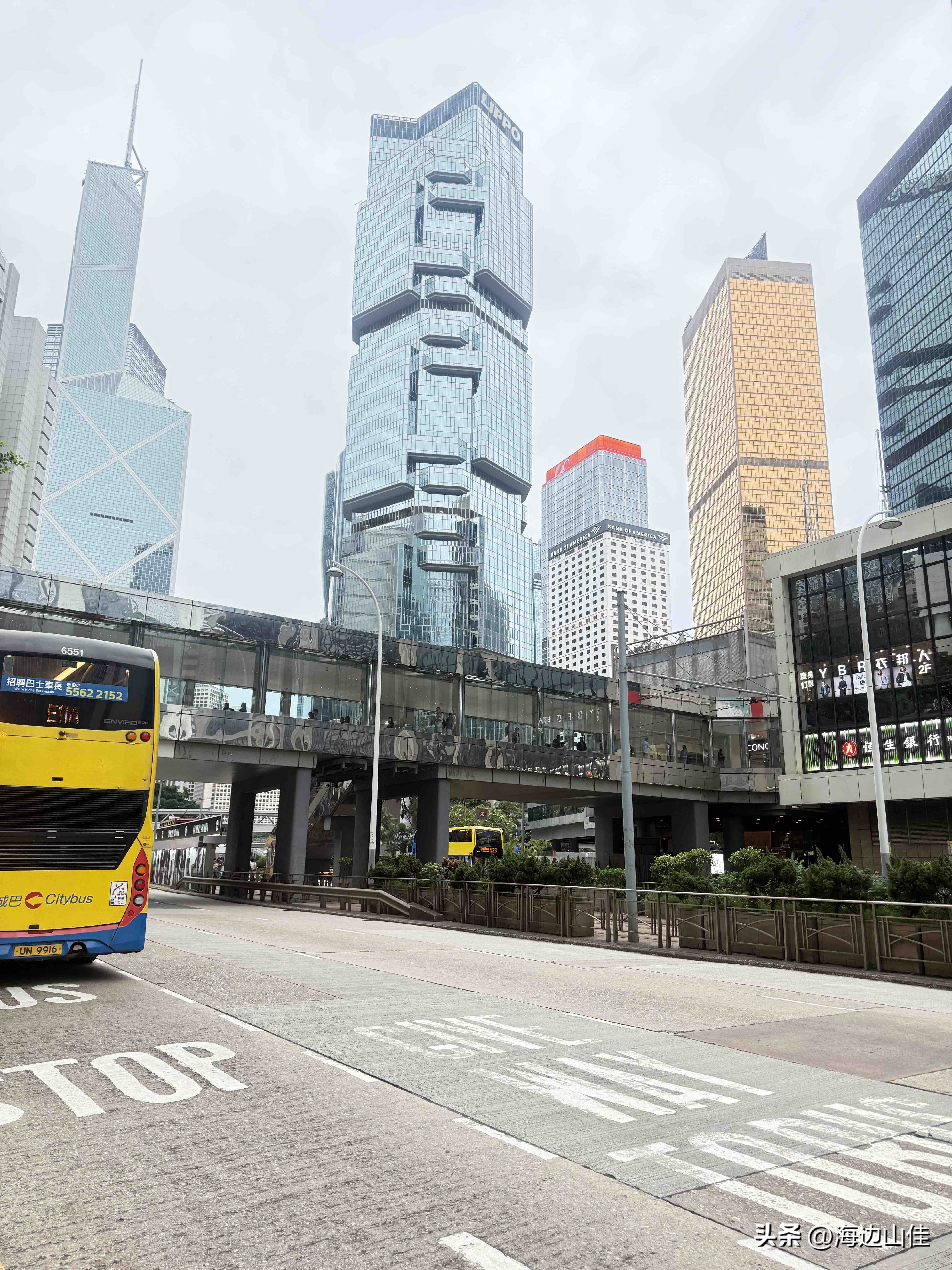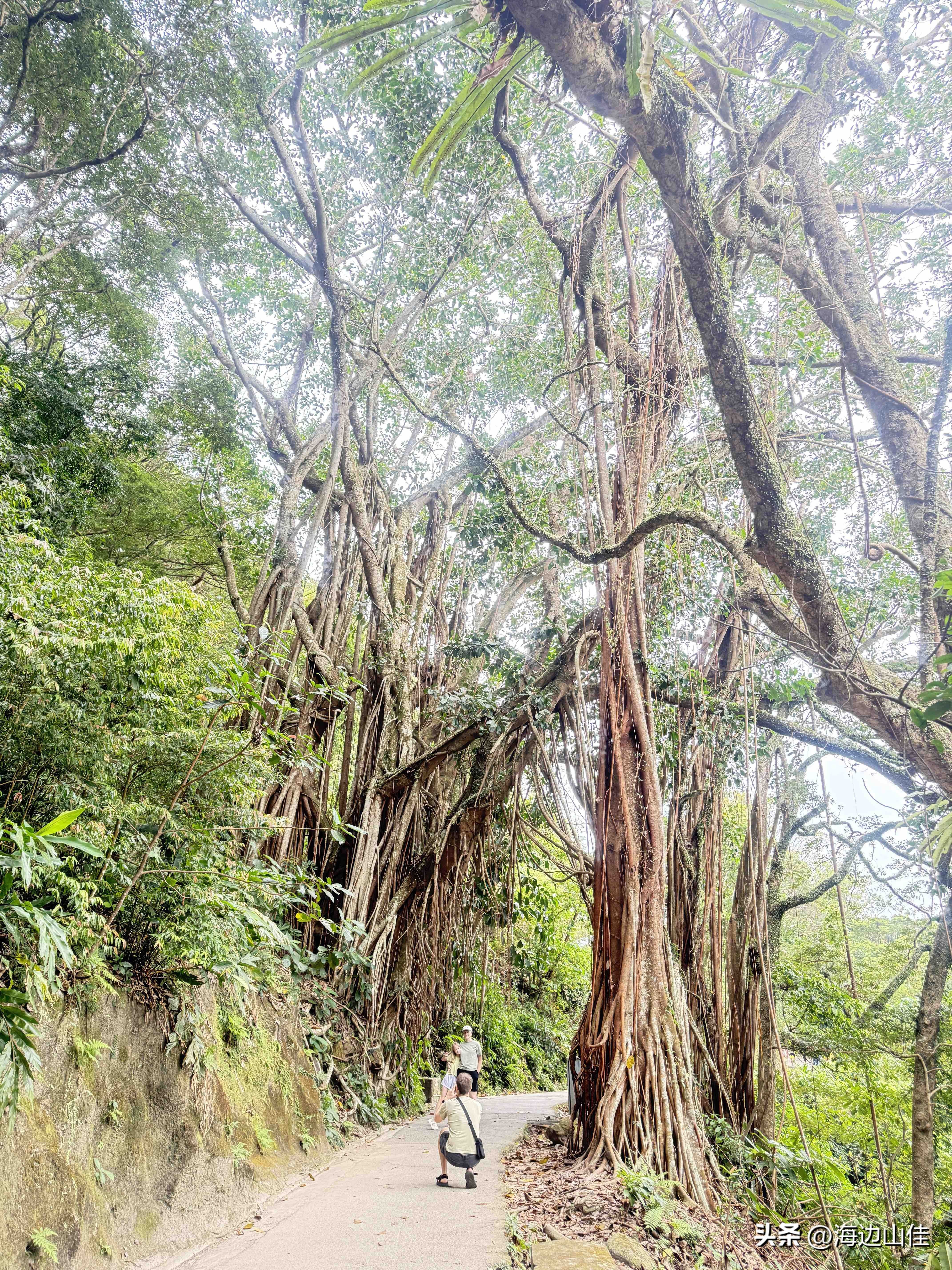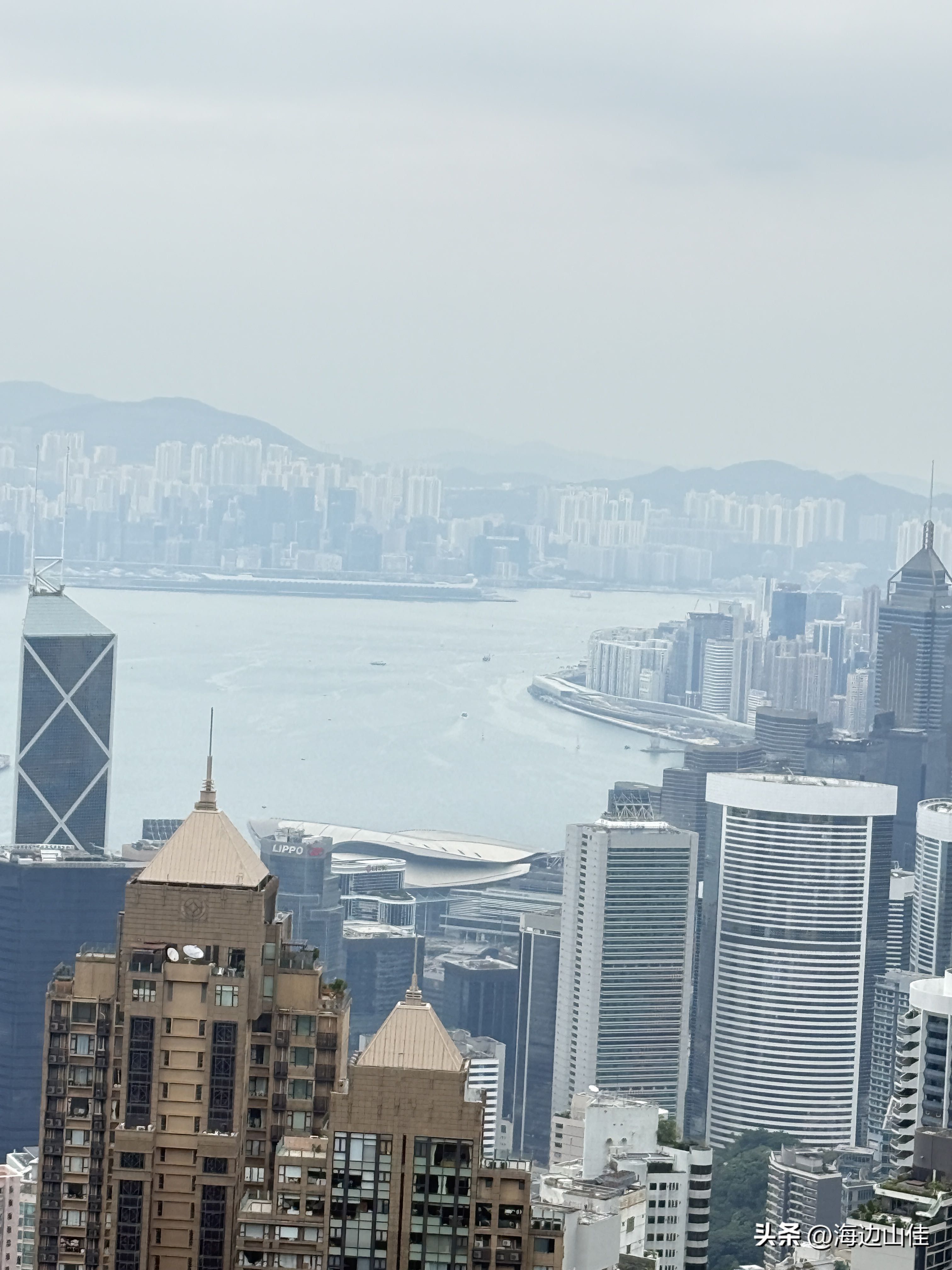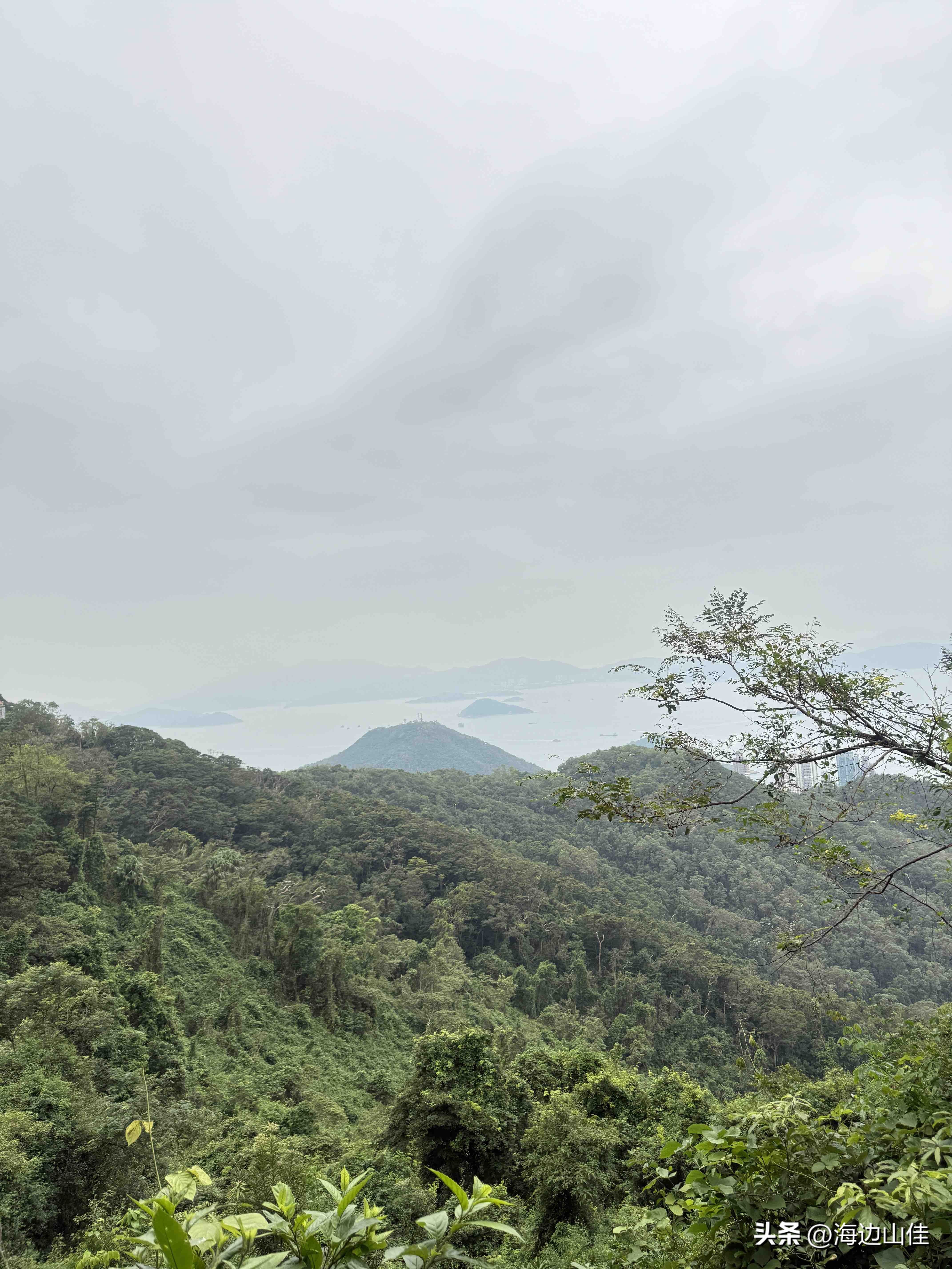 昨天是周末,我们夫妻二人准备了徒步的装备,带了拐杖水和遮阳帽一大早从深圳来到了香港的中环,然后从这里出发,沿阶而上,路过兰桂坊,走出市区,步行沿着旧登山道开始爬太平山,以前我们也多次来到过这里,但每次都是选择坐大巴或是坐缆车上去的,这次之所以选择步行,是想慢慢欣赏一下途中的风景,呼吸下山林中新鲜的空气,的确我们这一路上行,山中树木茂盛、郁郁葱葱、遮天蔽日,人也不很多,空气很好,小路蜿蜒曲折,都是坡路,也很少有台阶,走起来一点不吃力,非常不错,外加沿途还有著名的香港半山豪宅区,看着很普通的一个个小房子,差不多都价值上亿,据说香港的大部富豪们都住在此地,我们到此一游,也算见识到了什么是豪宅,走了近一个半小时,我们到了山顶的缆车站、凌霄阁和山顶广场,这里的风景更是震撼,整个维多利亚港,中环高楼嶙立的金融商业区,甚至整个香港都尽收眼底,美轮美奂,绝对是拍照的绝佳地点,虽然今天有点天公不作美,不算是个大晴天,但还好景色也都看得清,我们也是一通过瘾的拍照。