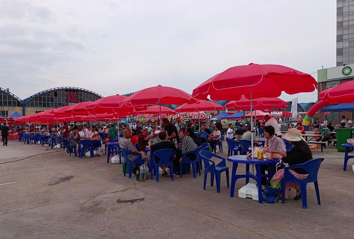 接着就轮到高光时刻的美食区了,哈哈,这估计是很多人来的重点吧!美食摊位数量可以给好评,炸串、铁板鱿鱼、煎饼果子都排着长队,现做现卖,香味飘十里。不过最妙的是,有个摊子竟然在卖东北大酱和黏玉米,感觉一下子把我小时候的记忆拉回来了。承认吧,我们这种轻熟龄人真的还是对这种家乡味情有独钟!而且还有啥“网红烤冷面”,是直接摊开在电烤盘上弄的,听旁边人聊天说“比外面大街上的便宜”。