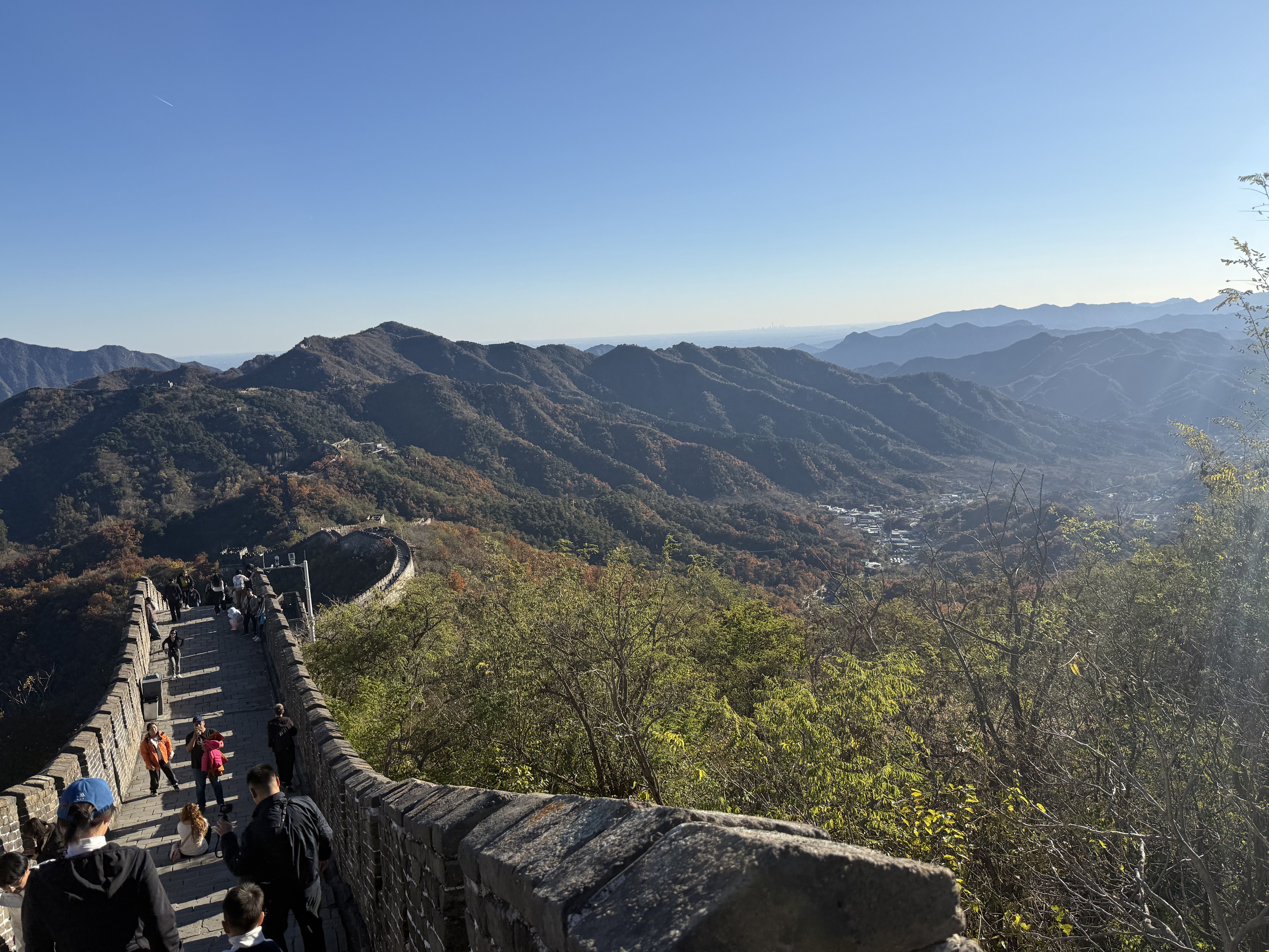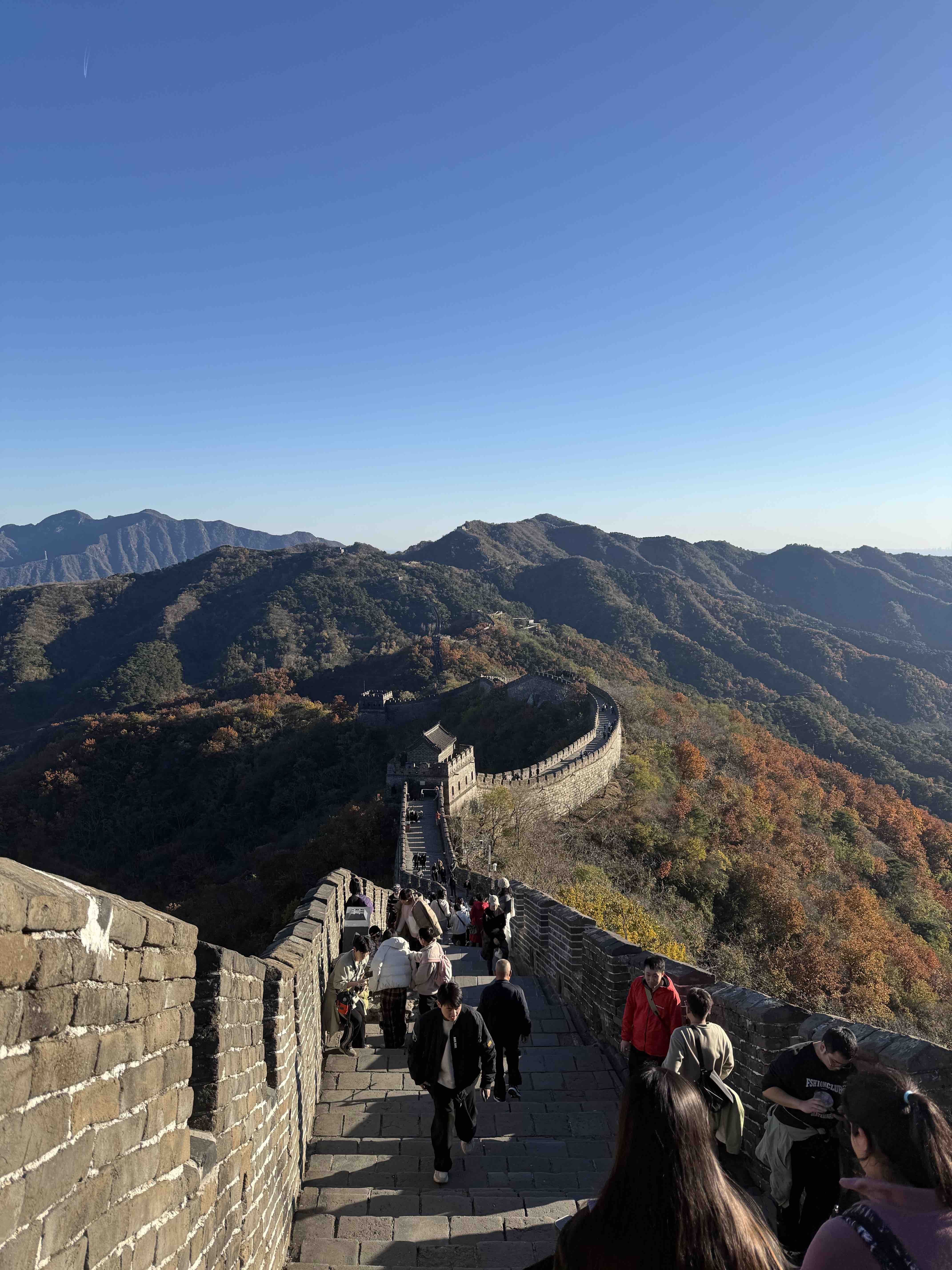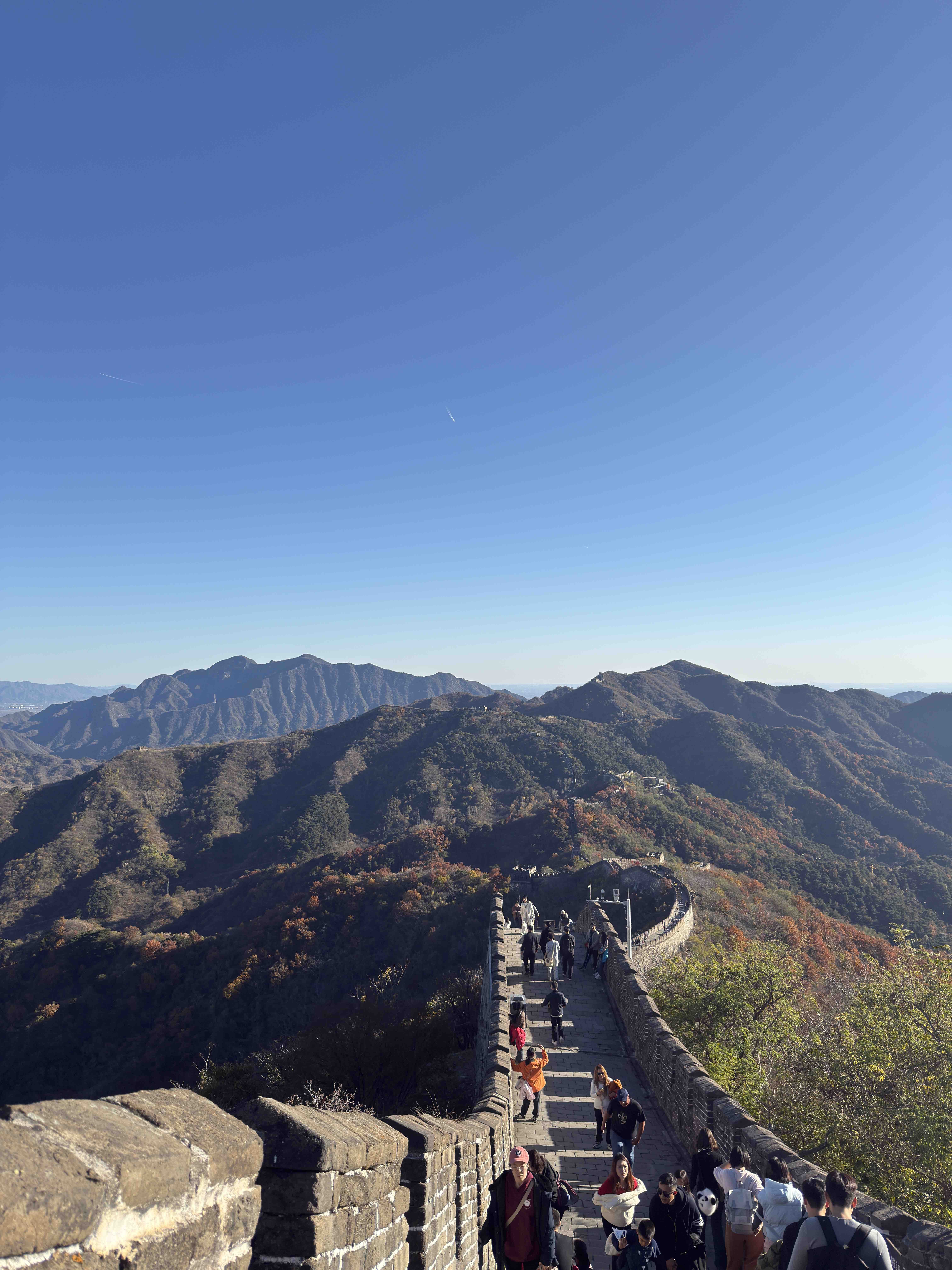 今天陪同家里老人去了趟慕田峪长城,亲测这条「元首级」赏红路线对家庭出游太友好了!当下正值红叶最浓时,长城内外层林尽染,阳光透过红叶洒在千年城砖上,美得像一幅油画。