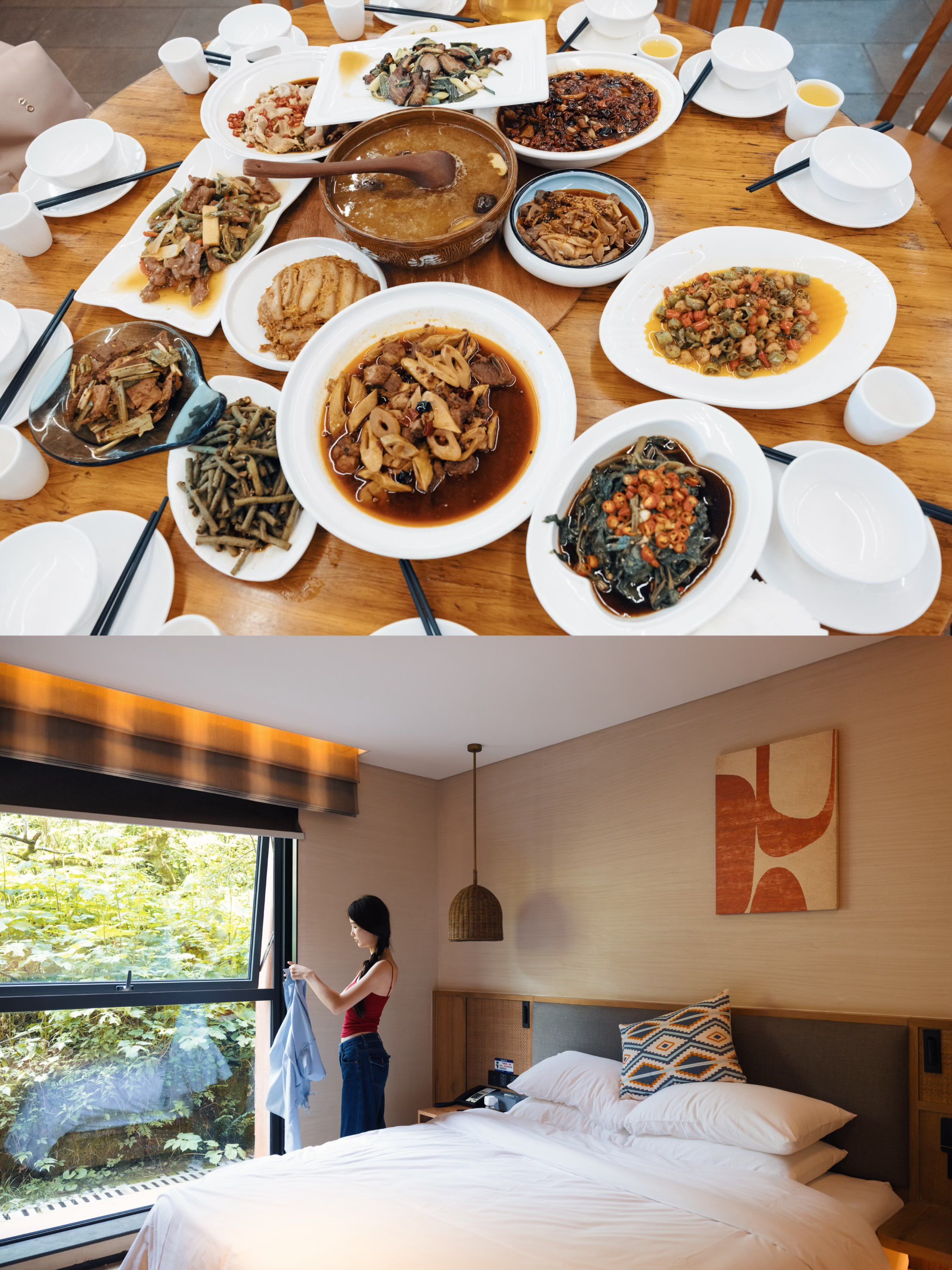 • 山顶酒店:两江酒店(西坡,中式风)、假日酒店(北坡,温馨新装修),推窗见山景,早上被鸟鸣叫醒