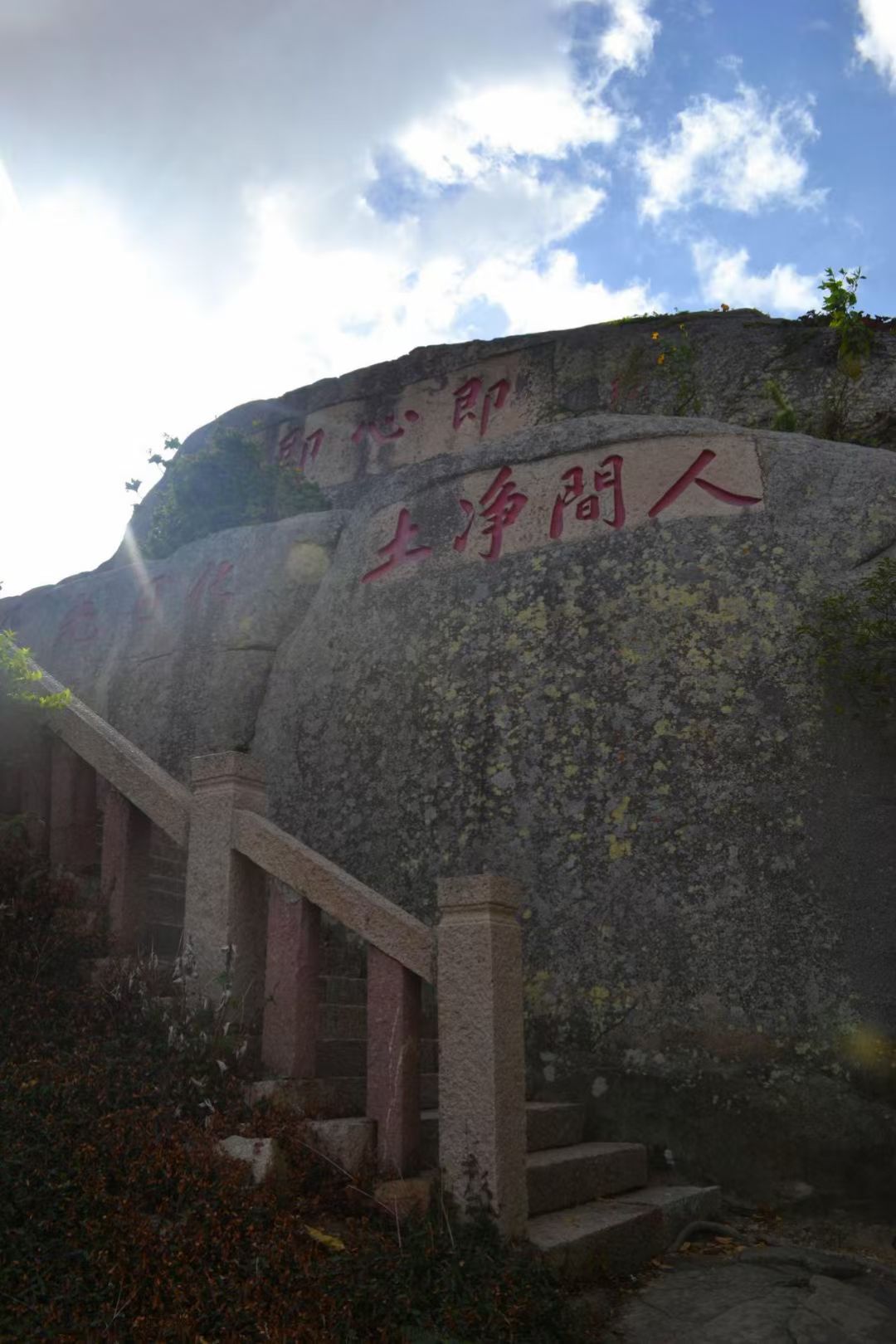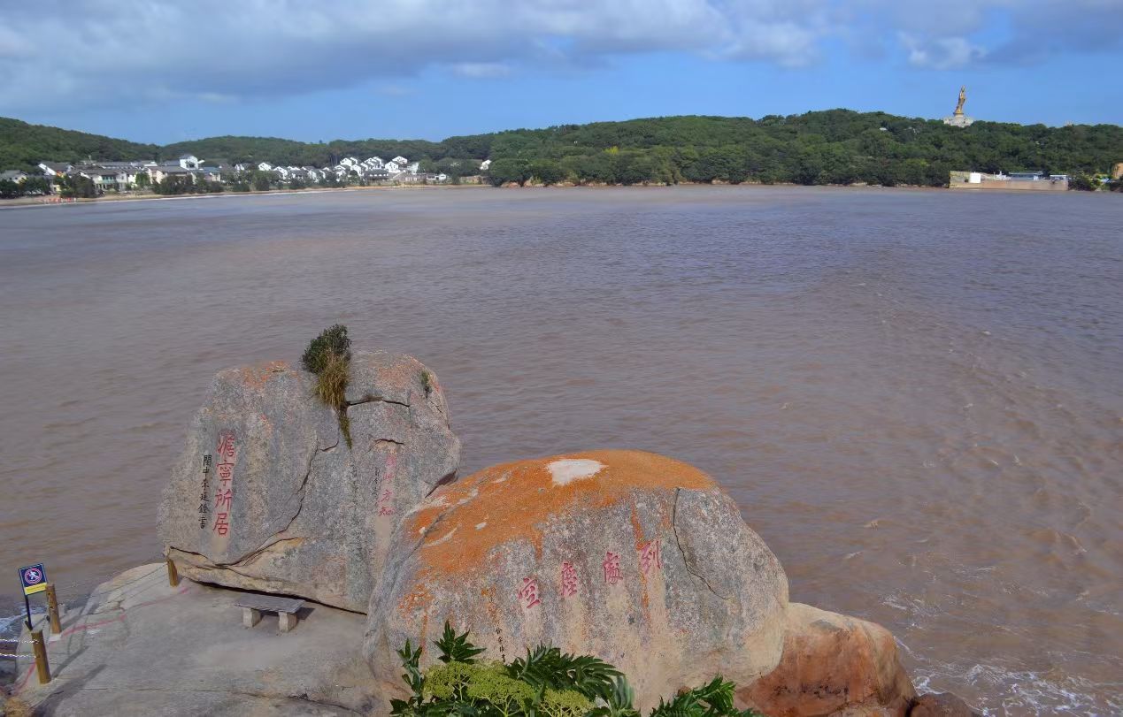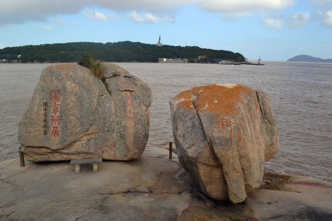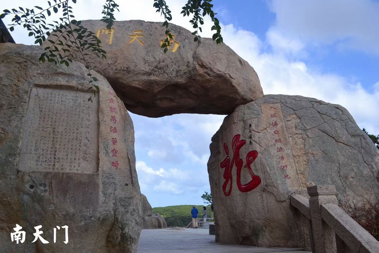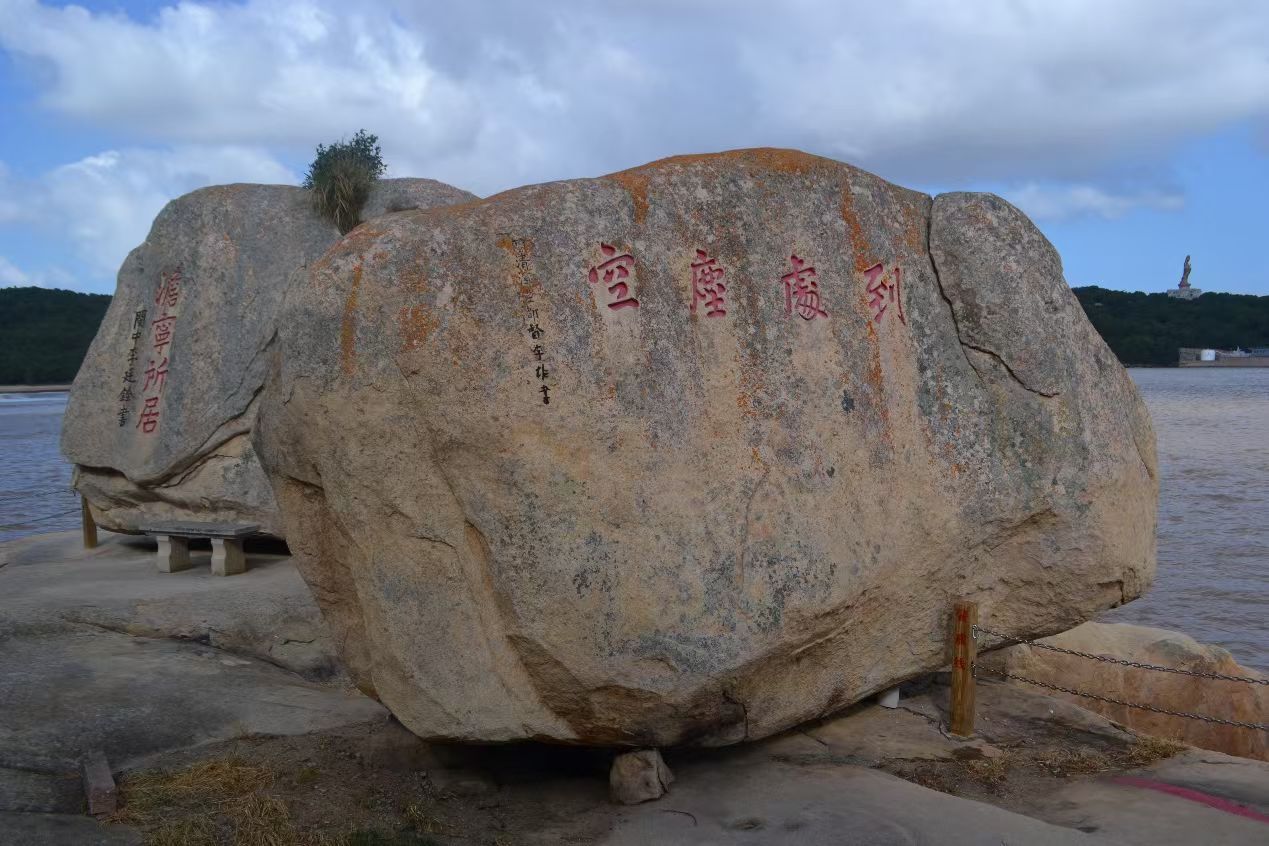 最后我们沿南岸一直走到了南天门,果然不负“天门”之名,正是由天生巨石垒成自然石门,南天门是普陀山风景名胜区观山海景色最佳去处之一,在此绕岩下到岸边,可远眺附近沿岸诸景,也可近距离接触赏析巨石上古人题字,力发千钧,天下好笔!