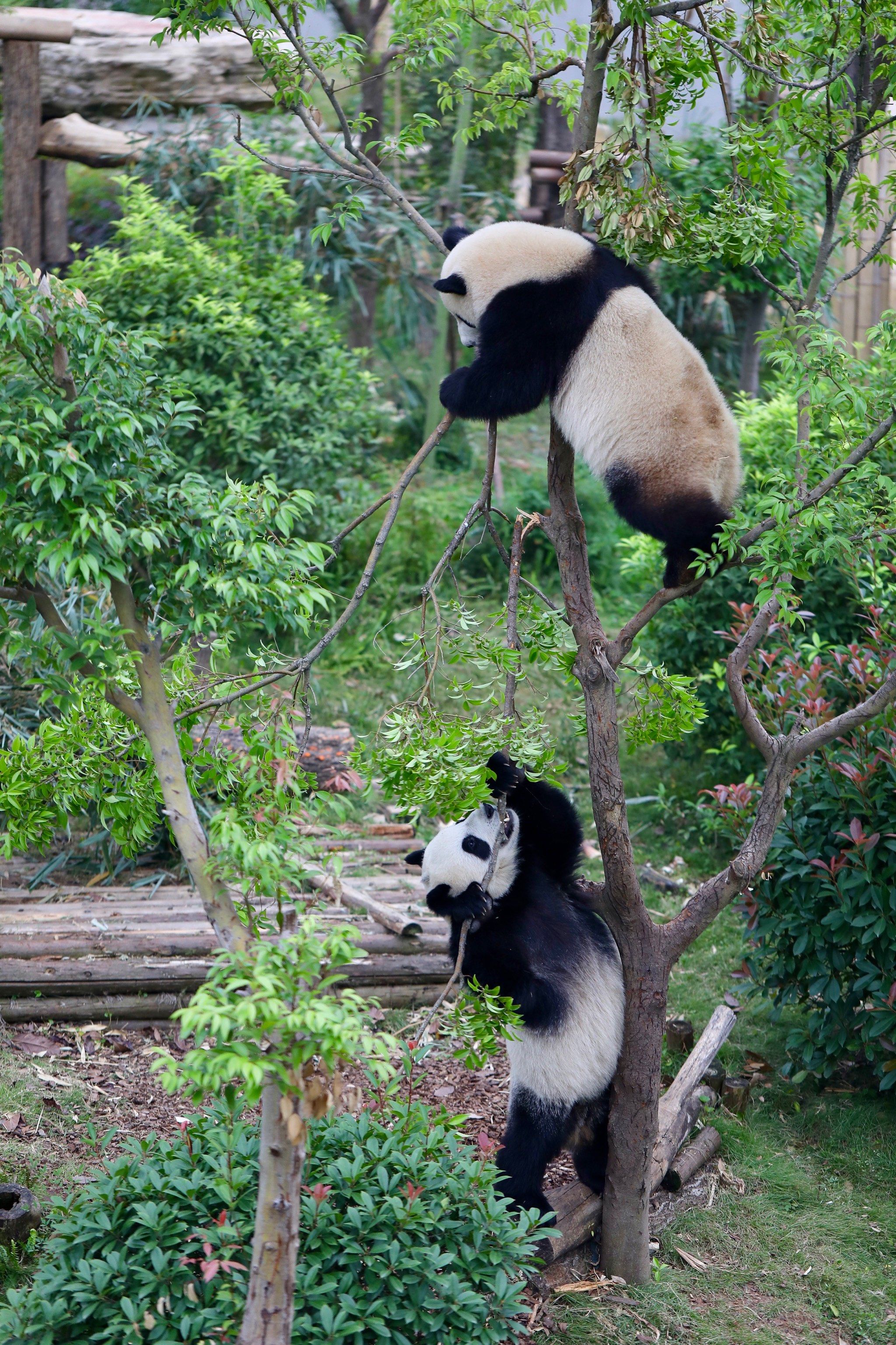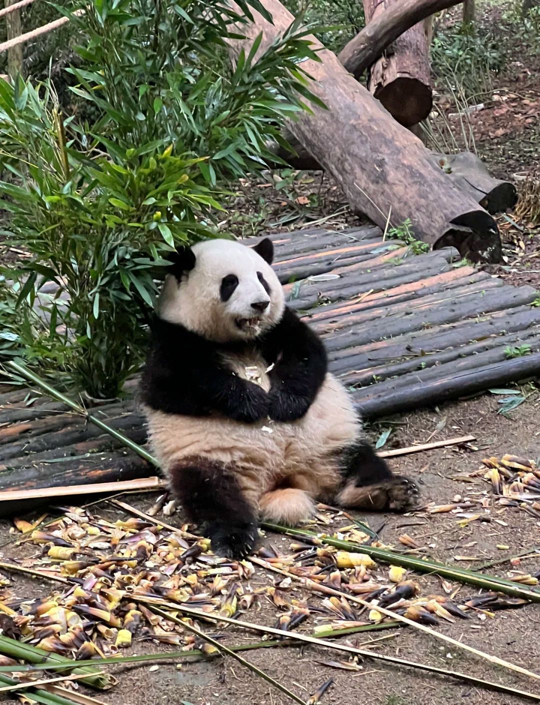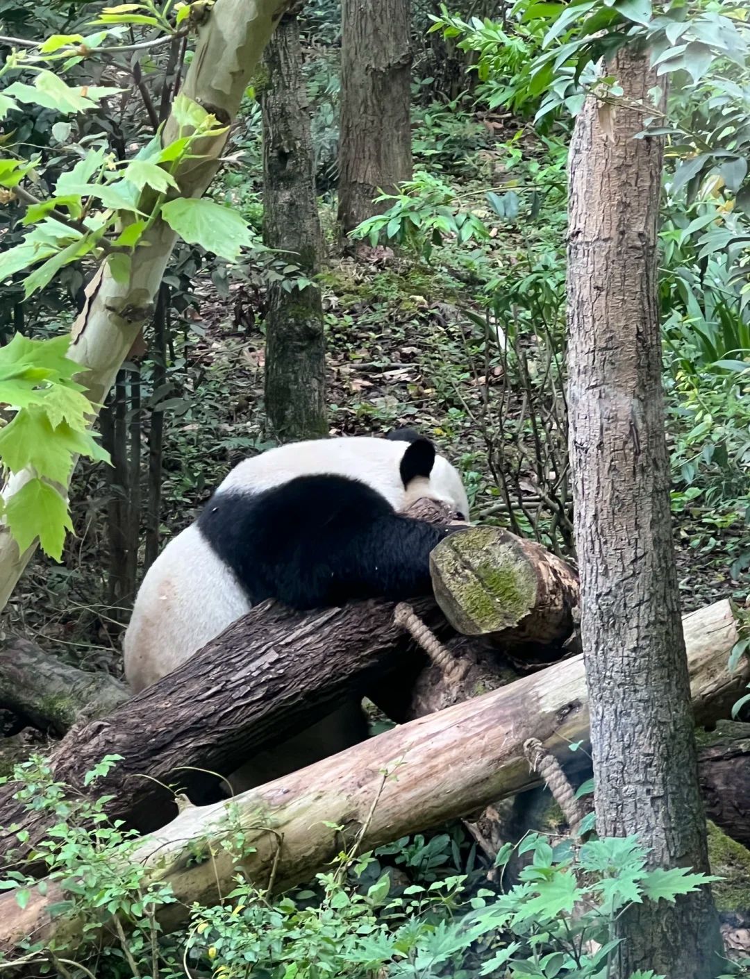 三、想着去熊猫基地看国宝卖萌,务必7点半顶门进,直奔山顶的月亮产房,那时候熊猫最活跃,吃竹子、爬树……
