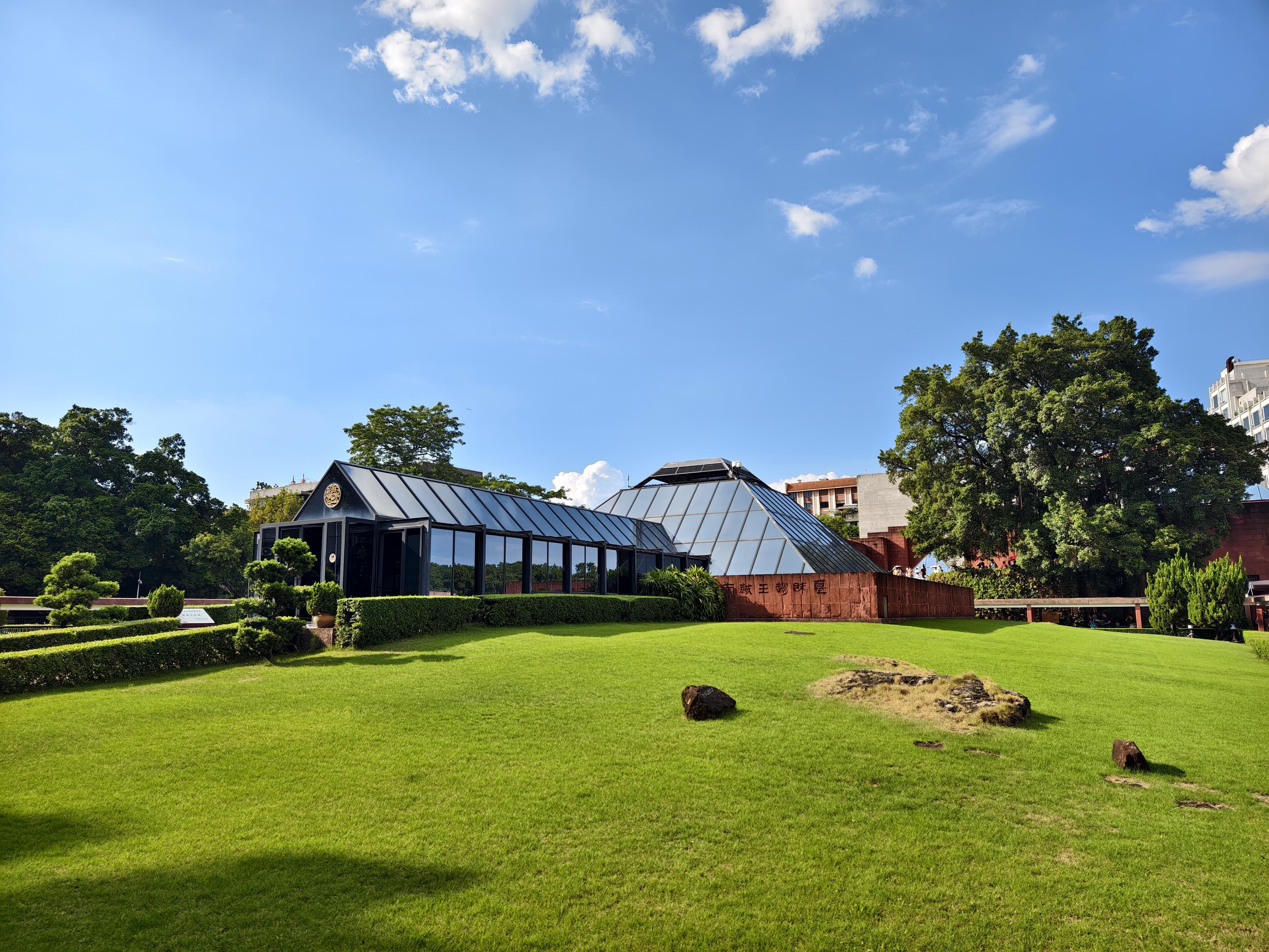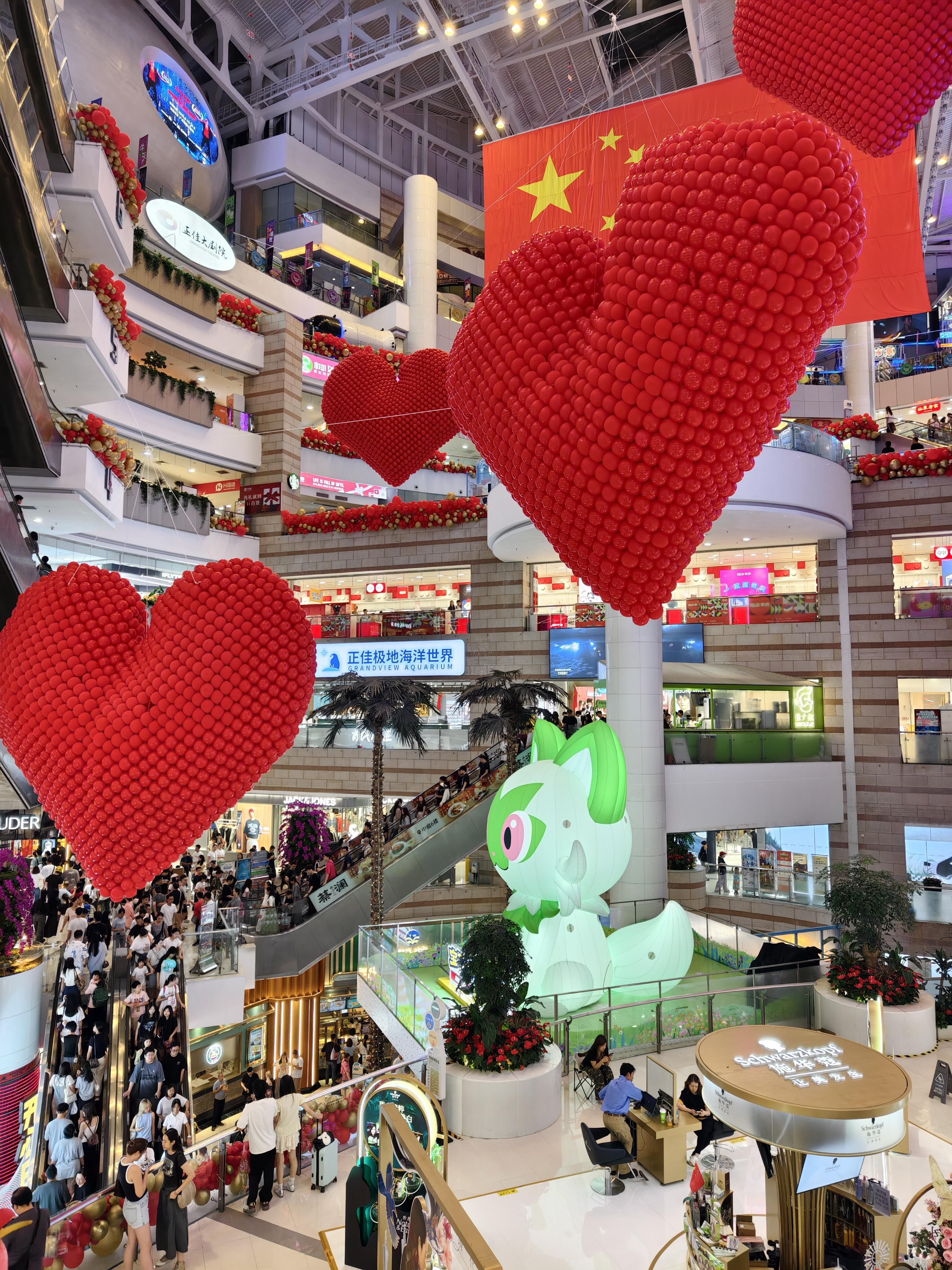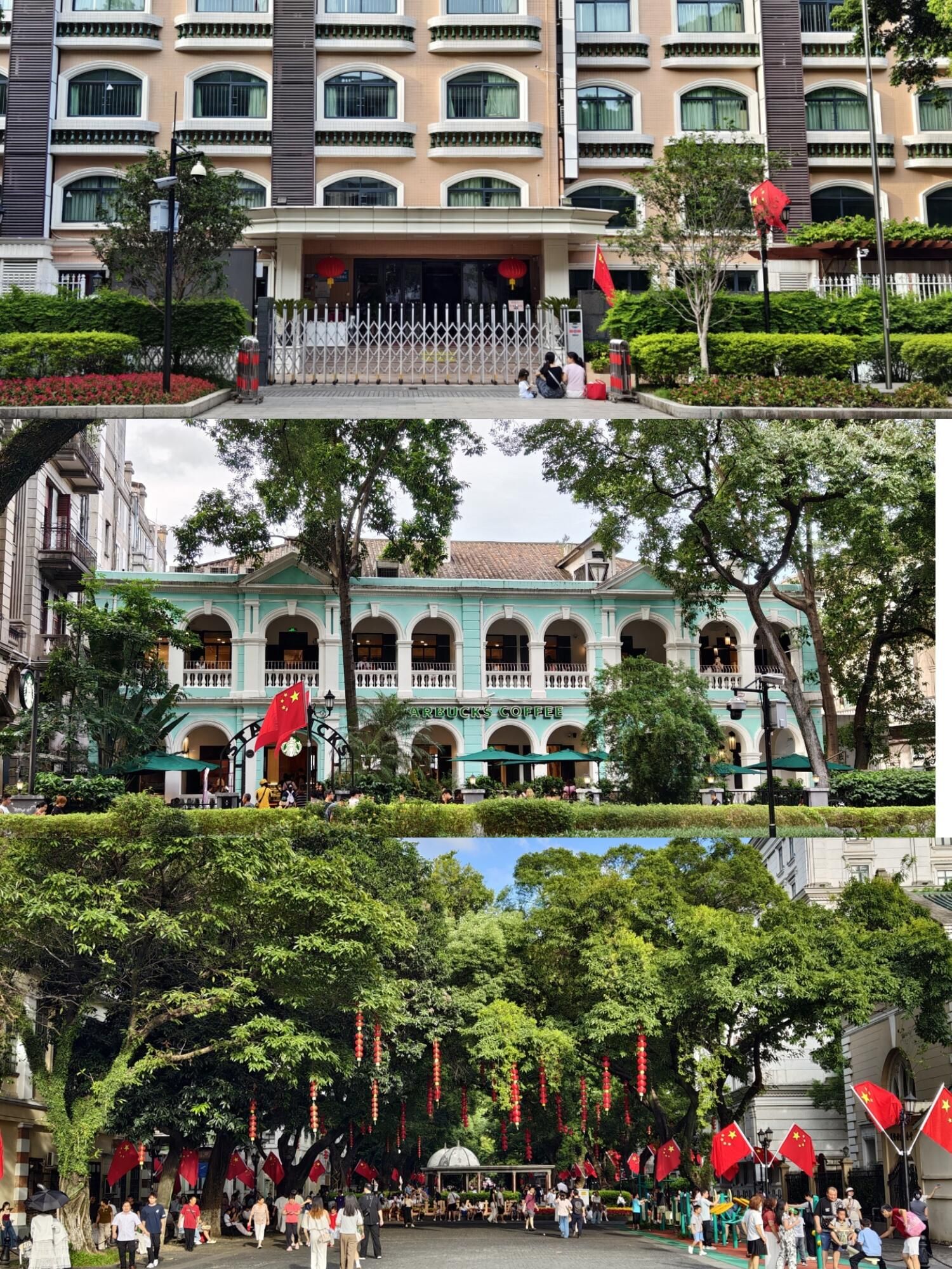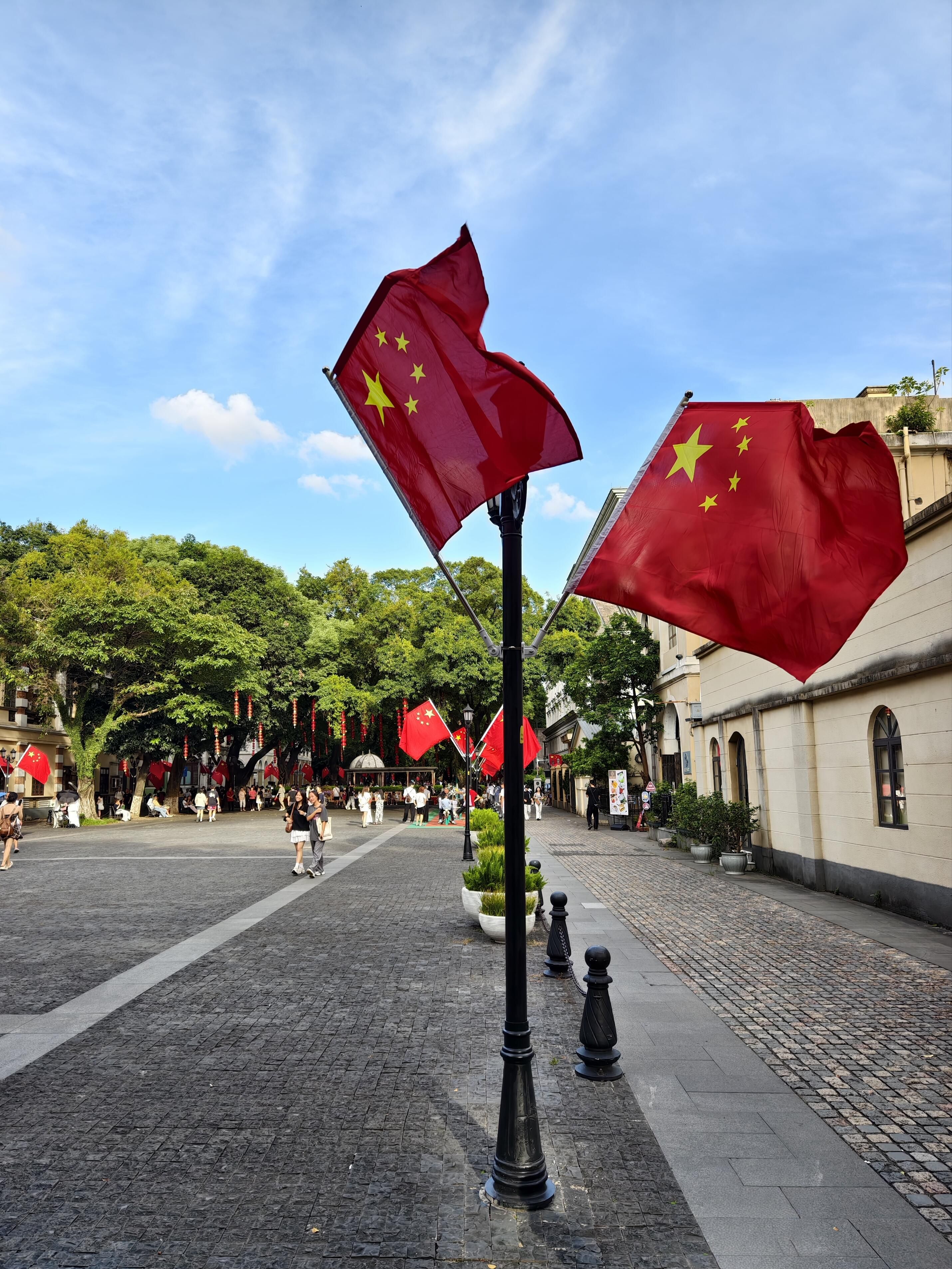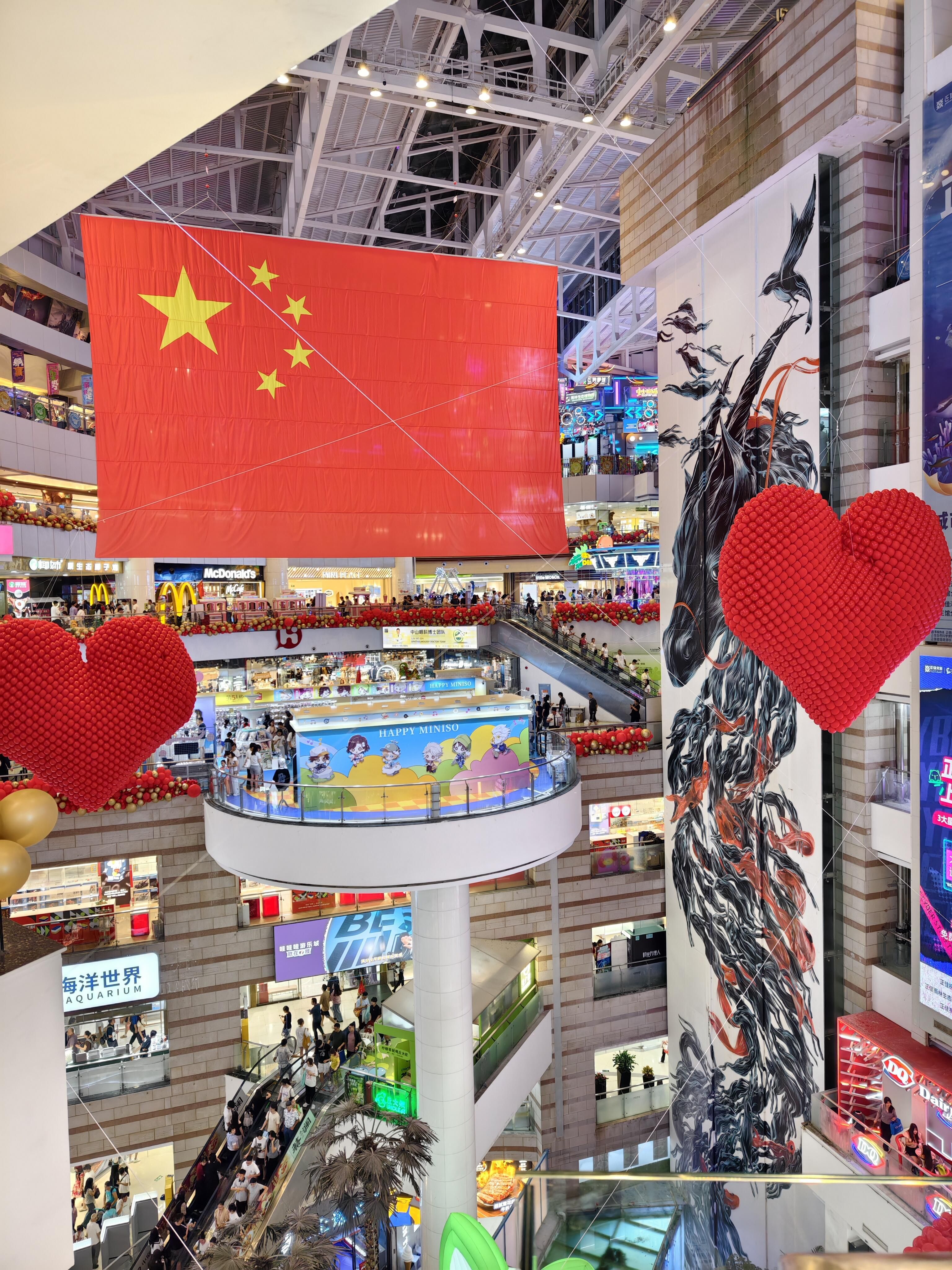 最意外的是正佳广场,明明是商场却拍出了最多照片,国庆巨幅国旗(图13-14)超震撼,反倒没去成的天环广场苹果店成了小遗憾。还有中山纪念堂的建筑美到惊艳,越秀公园爬一半就累到撤退,体育西路大鸽饭的鸽子好吃,饭却不值当……
