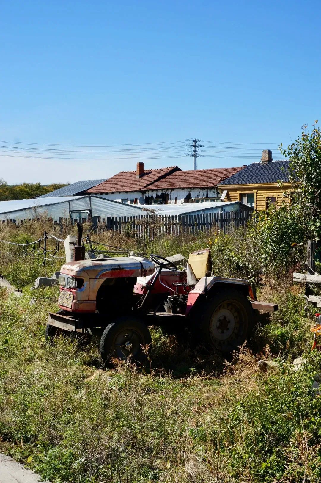 第二天逛龙凤大厦早市,才算摸到根河的生活脉搏。买大松塔时被老板娘“剧透”:小松子更饱满!东北巨鱼摊位前,看鱼和腿差不多长的震撼,让“新鲜”二字有了具象画面。骑上老板娘借的自行车逛敖乡,十几分钟车程里,城郊木头栅栏、生锈拖拉机、院子里大白菜接连入眼,恍惚跌进30年前的旧时光,粗糙却满是生活本味,这小众玩法比刻意找景点有趣百倍。