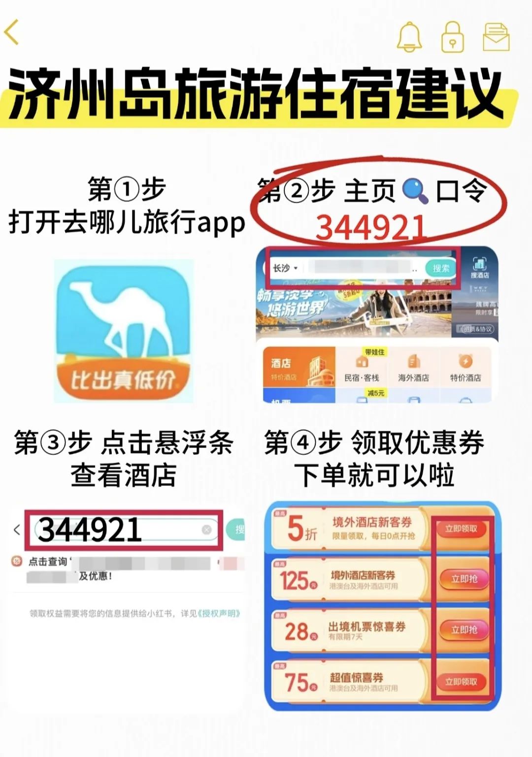 点击笔记底部“前往去哪儿”按钮 领取优惠下单。