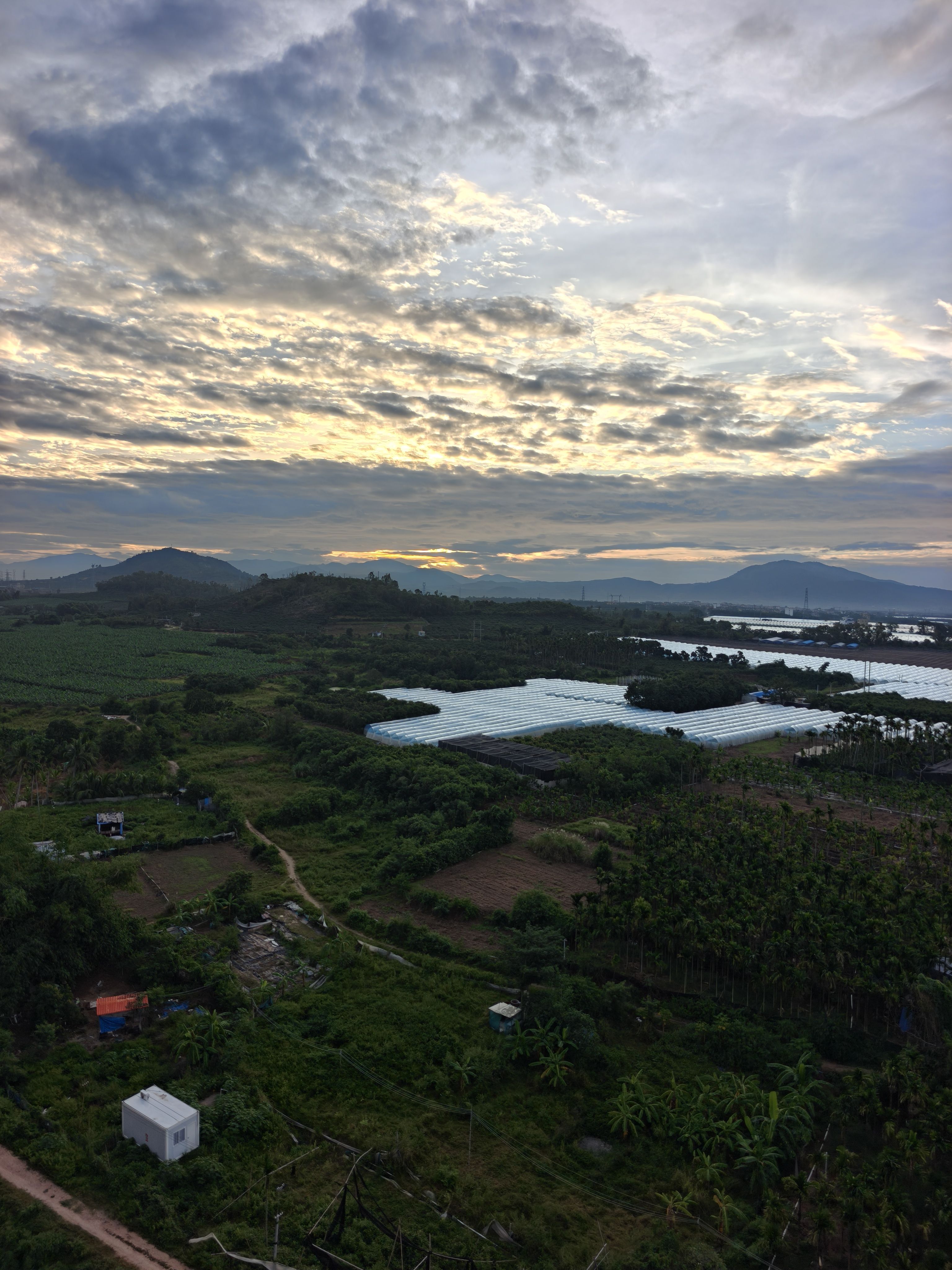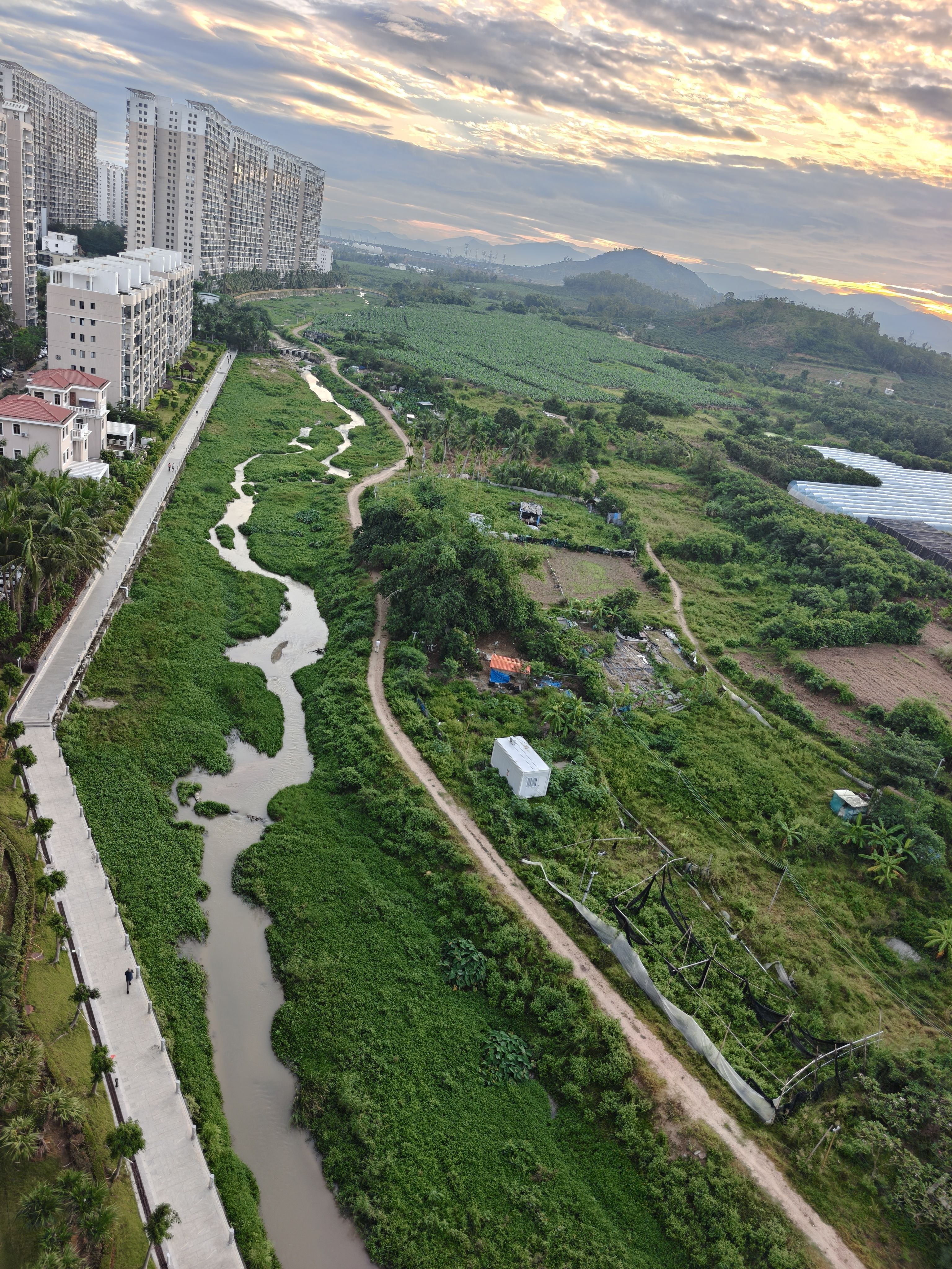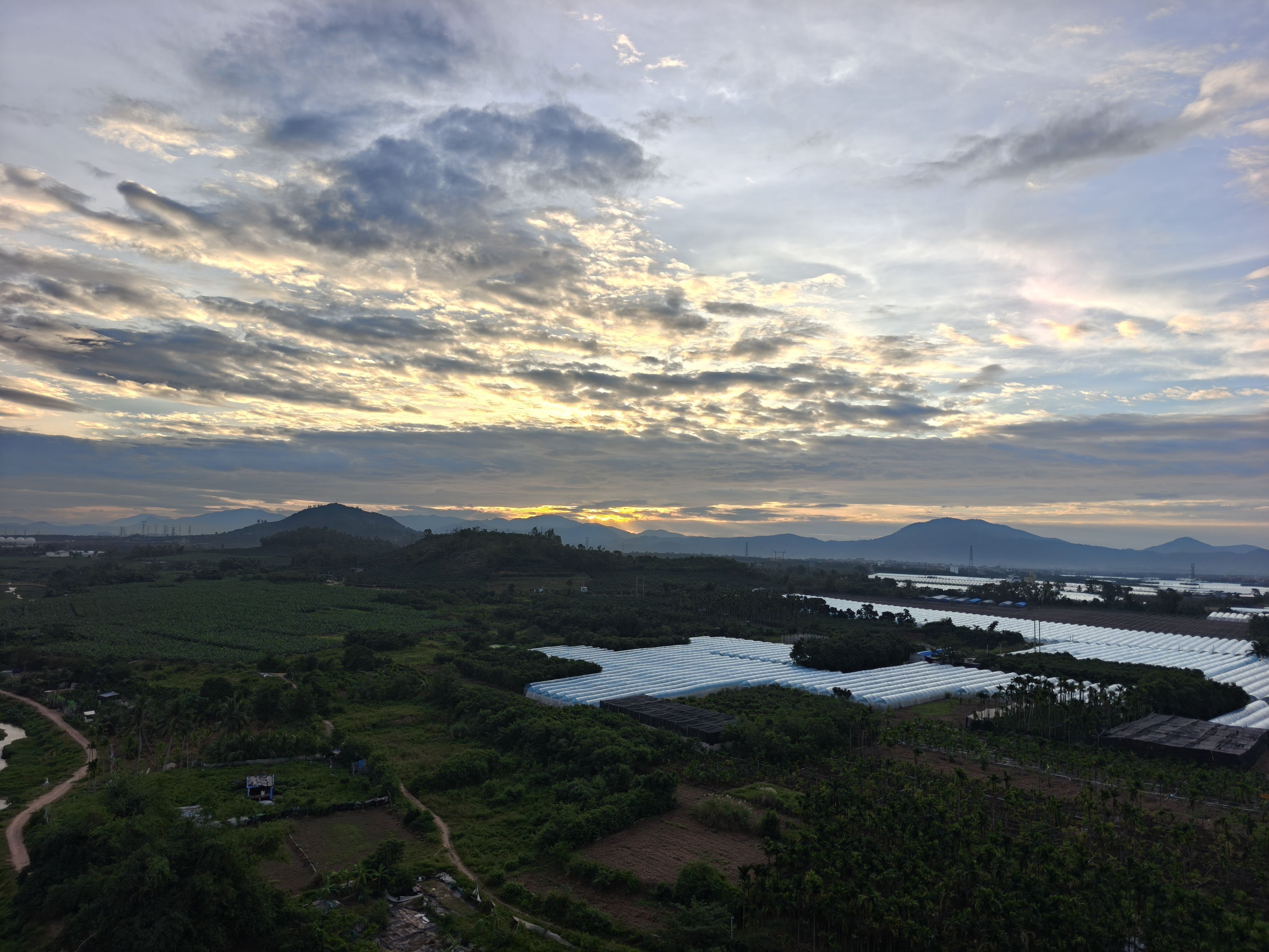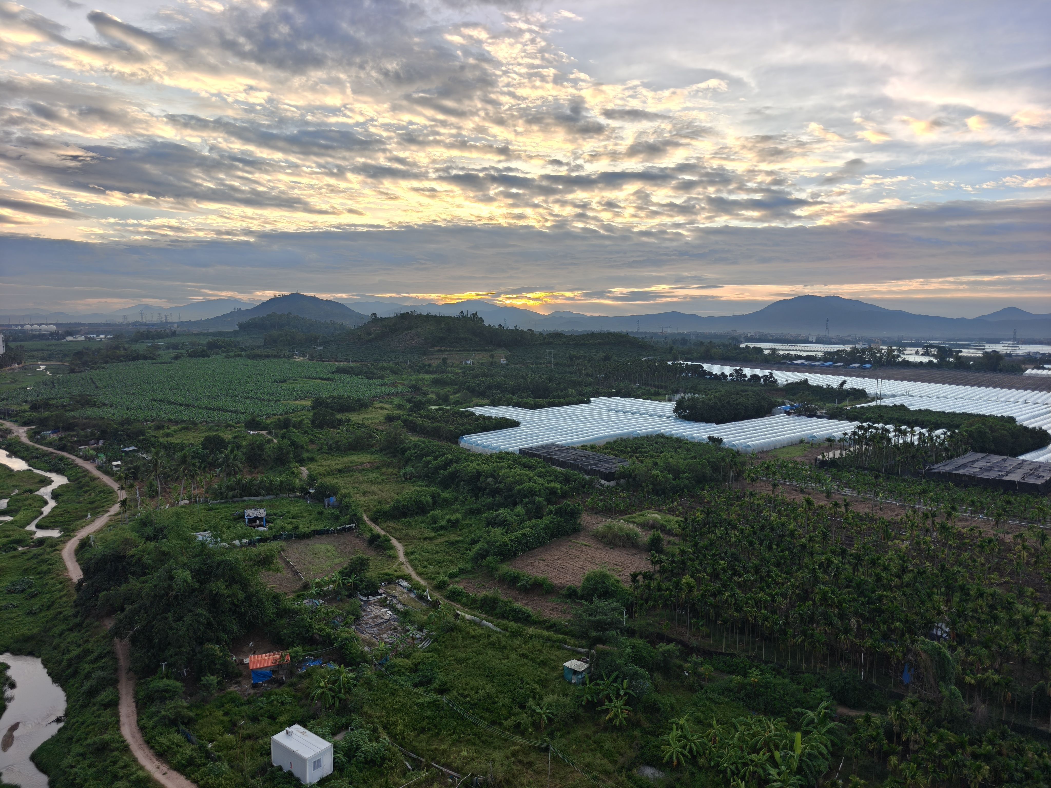 今天的朝阳,仍然被东方山岭上空的乌云遮掩着。我想,在海南岛上想看到旭日东升,无异于中彩票吧?偏居于岛西南地区的九所就更如此了吧?似乎海南岛的山地上空,永远都聚集着云雾,上半年旅居三亚时就有这印象了。