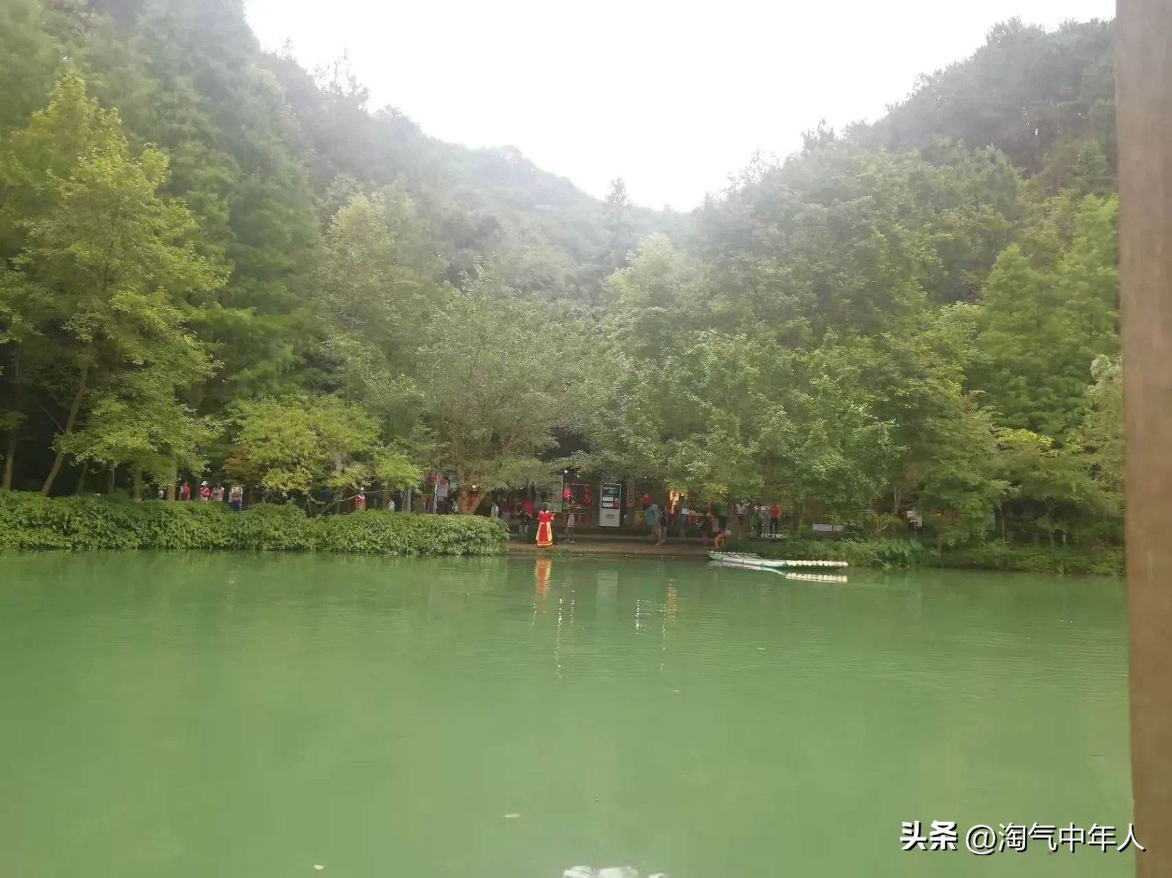 一进山门,有个大,潭这有一个撑筏人将游客带向瀑布,潭深11米。这里是鲤鱼的天堂,游客进入风景区在抵达瀑布前,游客可以坐竹筏做成的奔驰,10元一位。可以买食而喂之,鱼随竹筏而行,手伸入水中就可以触摸到鱼。